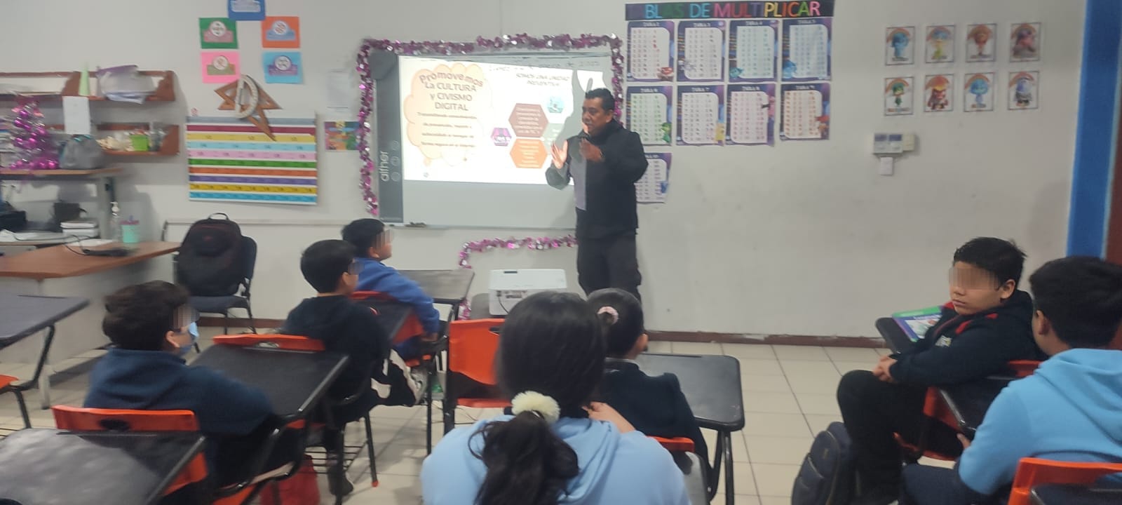 Personal de la Guardia Estatal Cibernética brindó una plática preventiva a estudiantes de la Escuela Primaria María Isabel Mata Alvarado de Ciudad Victoria.