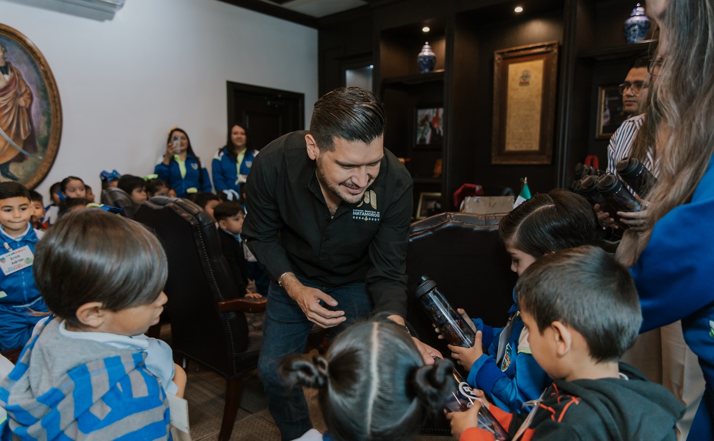 El alcalde Beto Granados recibió en su despacho a los pequeños del jardín de niños “Francisco Pérez Ríos”, quienes expresaron su apoyo al edil, animándolo a continuar con su ardua labor para que Matamoros brille aún más.