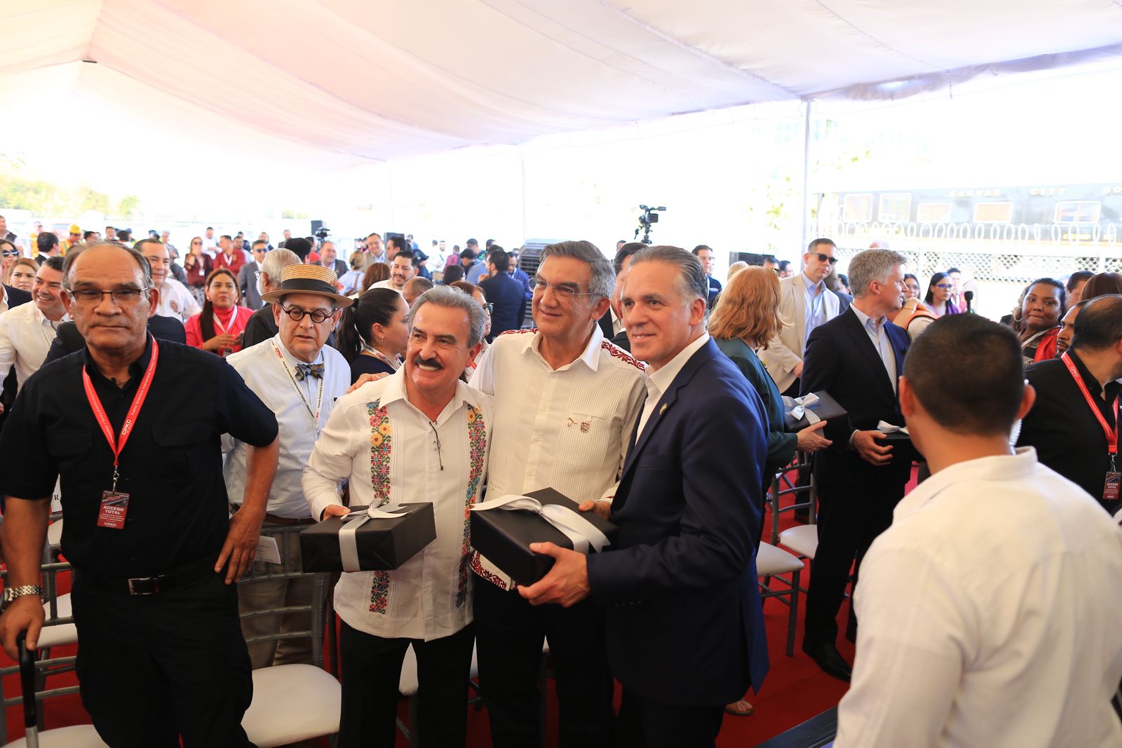 El evento contó con la asistencia de Erika Zielke, cónsul de EU en Nuevo Laredo; el embajador de Canadá en México, Cameron MacKay; el representante del Consejo Coordinador Empresarial, Eduardo Garza y Víctor Flores Morales, líder del Sindicato de Trabajadores Ferrocarrileros de la República Mexicana (STFRM), así como legisladores locales y federales, funcionarios estatales, dirigentes empresariales y personal de la empresa CPKC.