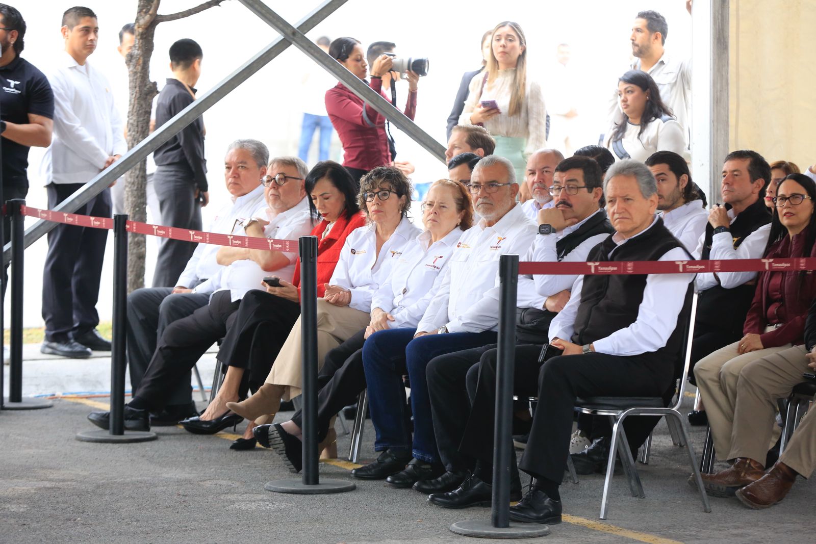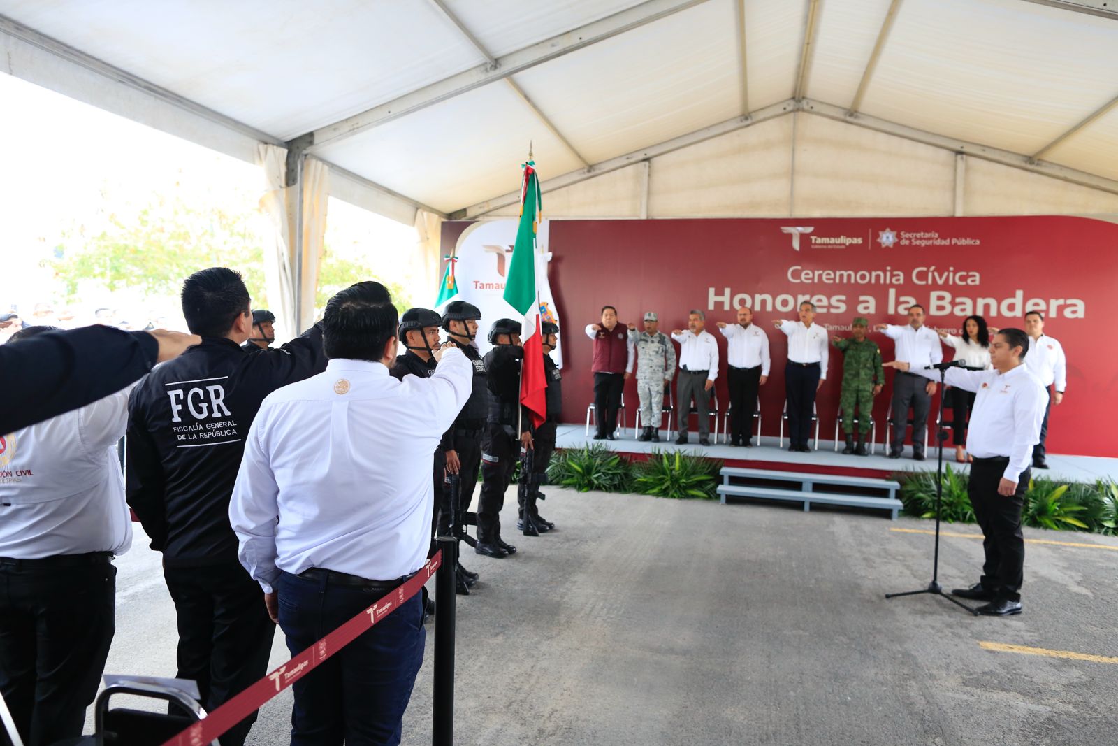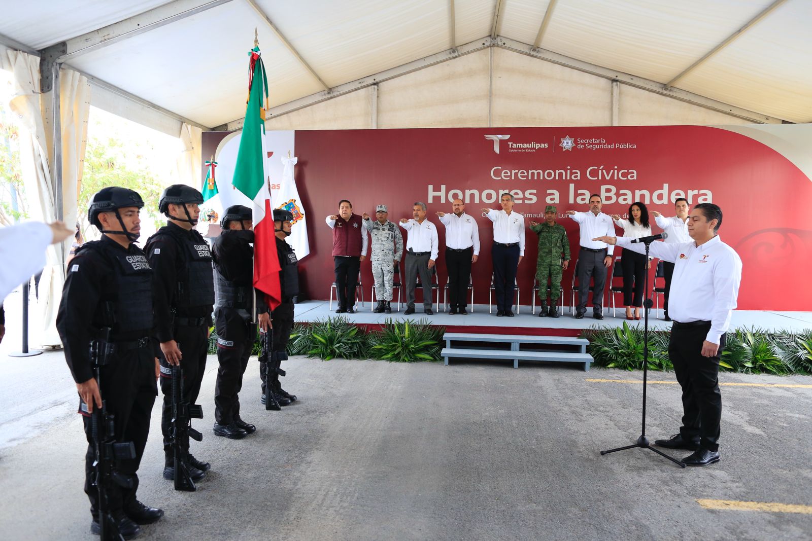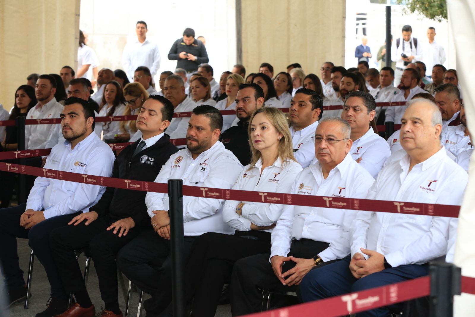Acompañaron al gobernador: Héctor Joel Villegas González, secretario general de Gobierno; magistrado Hernán De la Garza Tamez, presidente del Supremo Tribunal de Justicia; diputado Humberto Prieto Herrera, presidente de la Junta de Gobierno del Congreso del Estado; diputada Cynthia Jaime Castillo, presidenta de la Mesa Directiva del Congreso; en representación de la 48 Zona Militar estuvo presente el coronel José Marín Peñaloza, y en representación de la Guardia Nacional, el capitán Jorge Luis Rodríguez García, además de los integrantes de la Mesa de Seguridad, funcionarios del gabinete estatal y personal del Secretariado Ejecutivo del Sistema Estatal de Seguridad Pública.