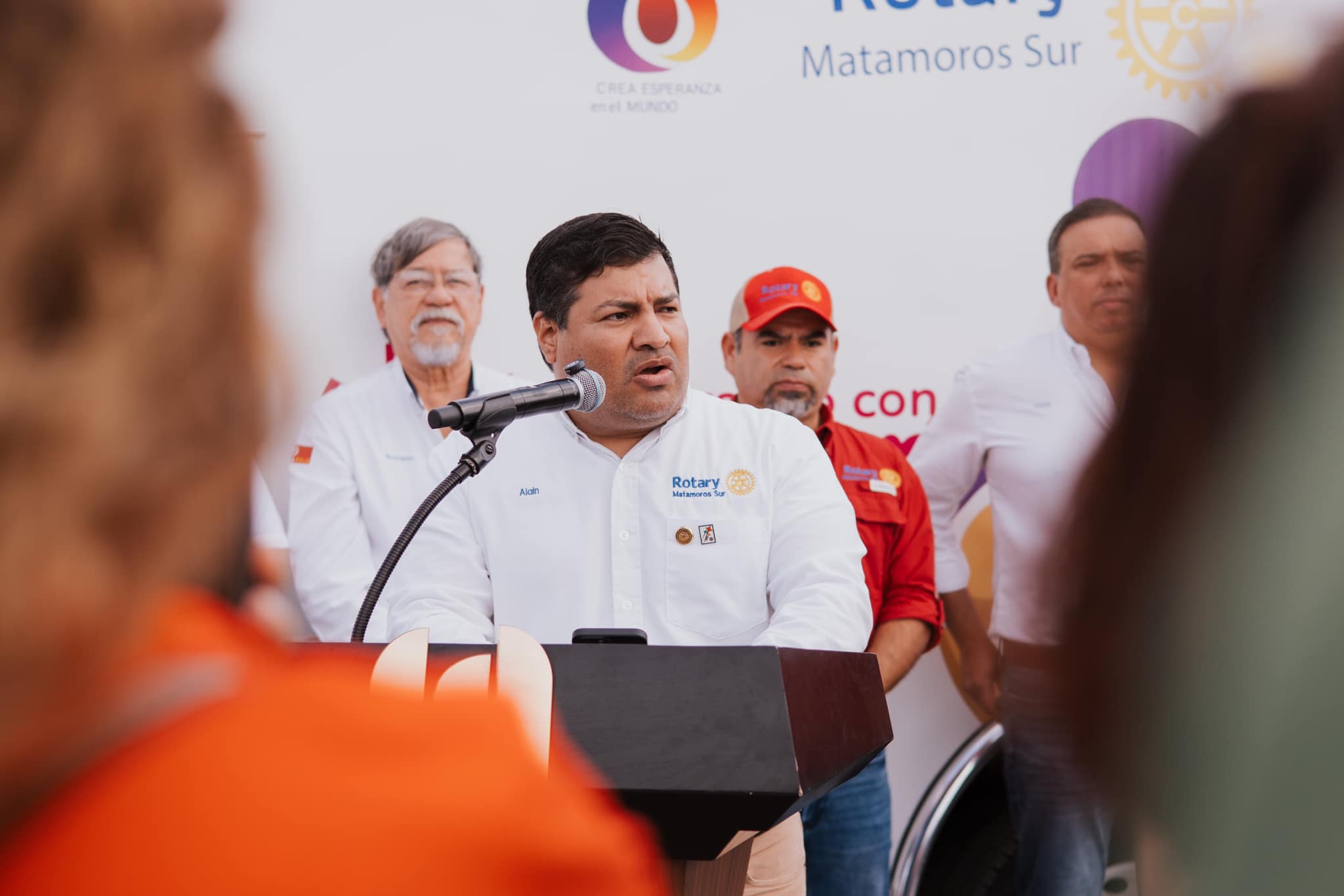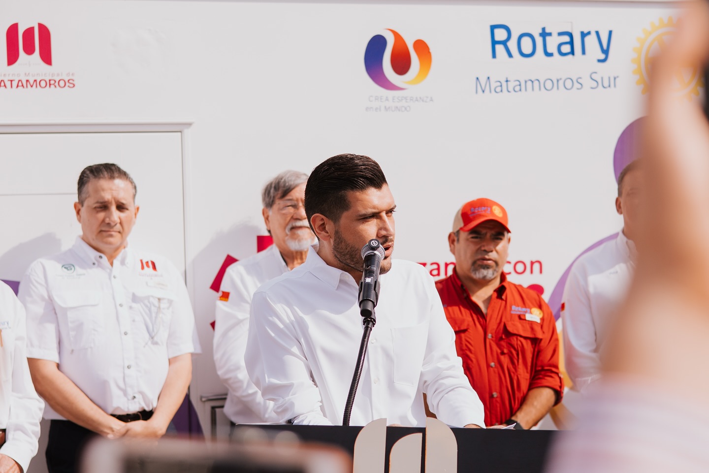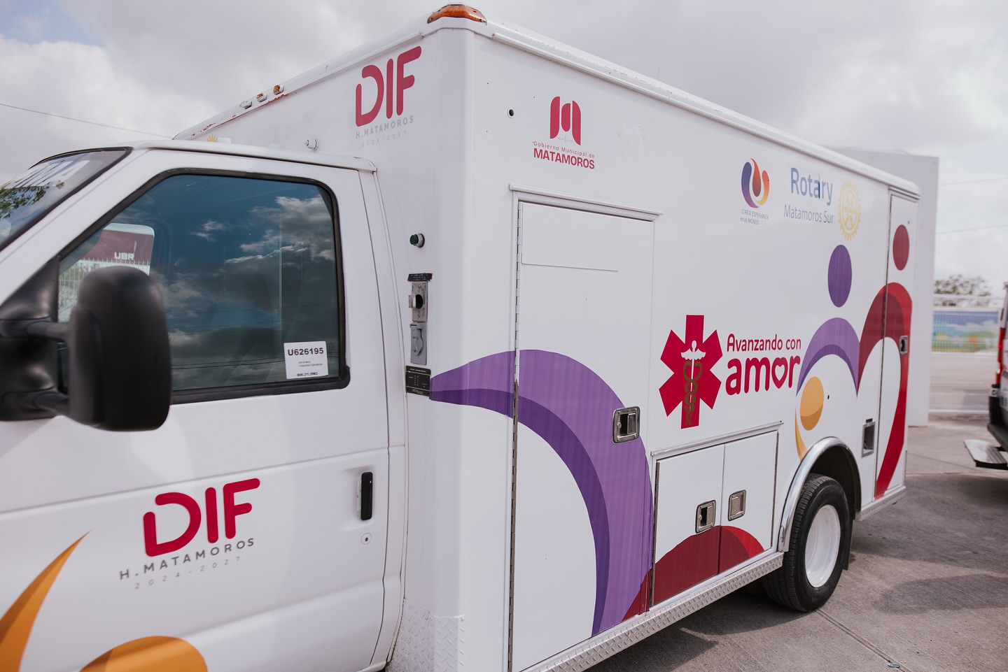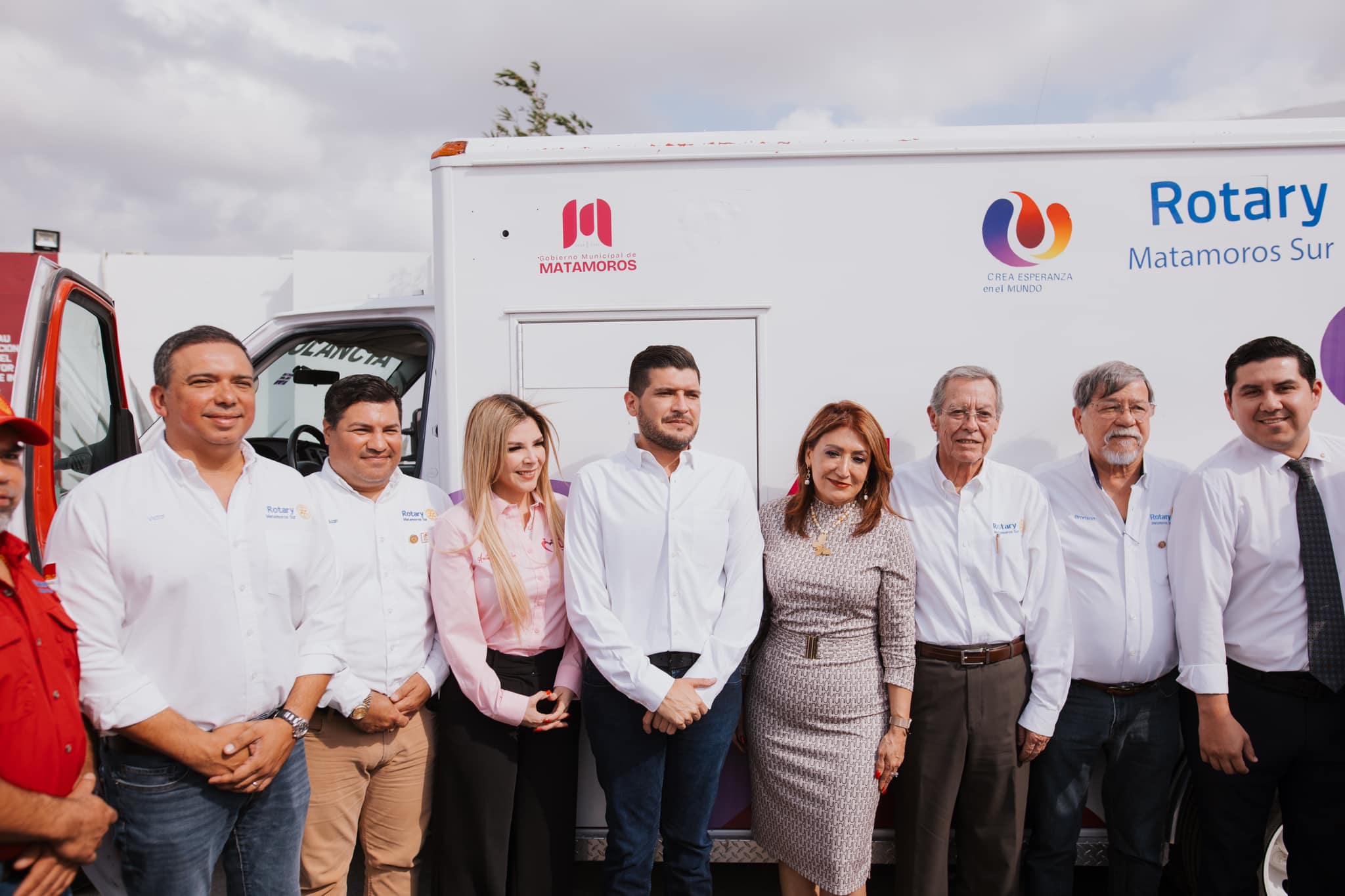 Asimismo, el Club Rotario Matamoros Sur realizó otra donación de ambulancia, reafirmando su compromiso con el bienestar de la ciudadanía. Durante el evento, estuvieron presentes el Lic. Alain de León Cortinas, Presidente del Club Rotario Matamoros Sur; Anita de Granados, Presidenta del Sistema DIF Matamoros; y la Sra. Julia Fávila de Granados, Presidenta del voluntariado del Sistema DIF Matamoros.