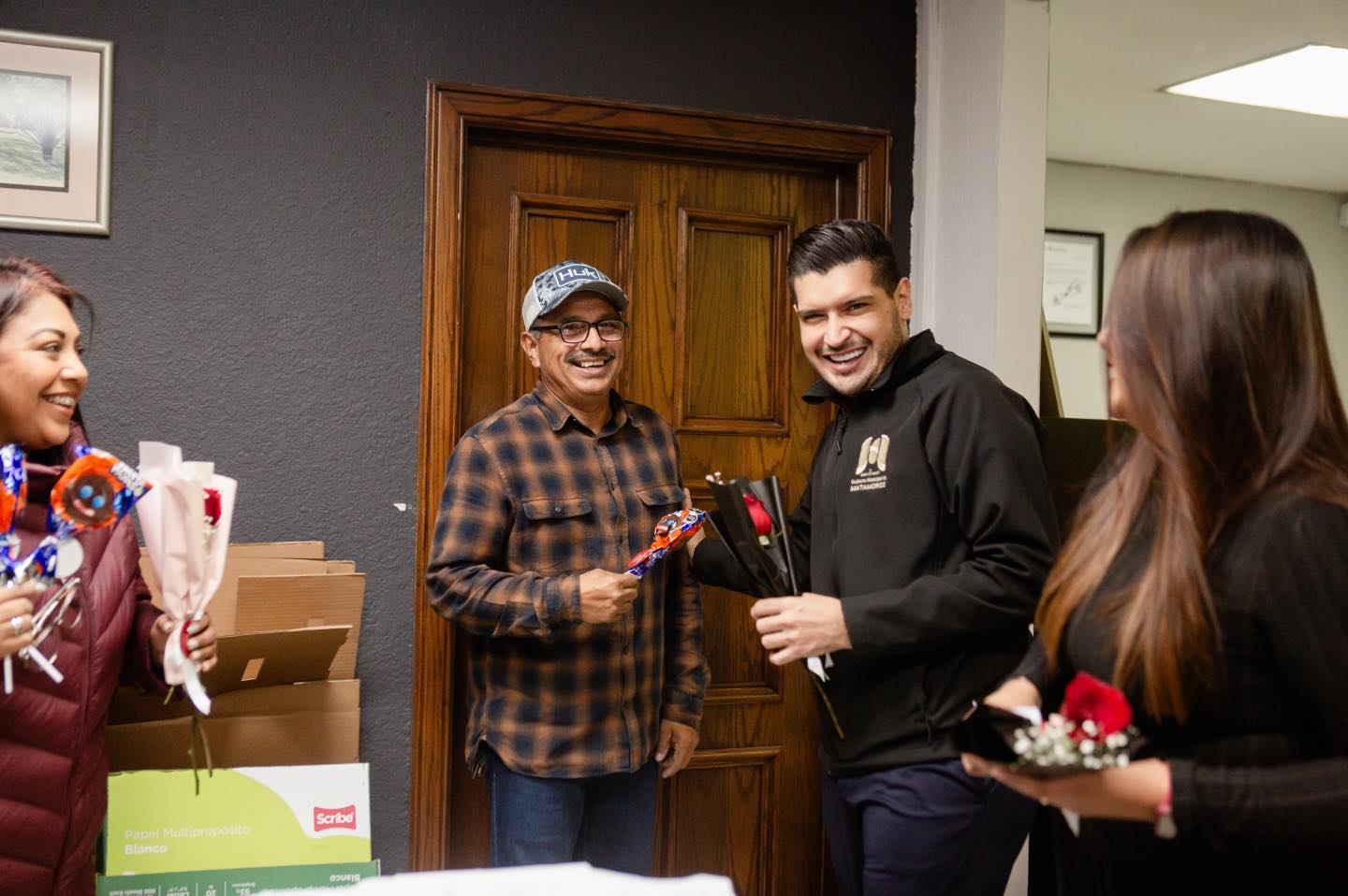 Alcalde Alberto Granados celebra el «Día del Amor y la Amistad» con rosas y chocolates a trabajadores y ciudadanos en Palacio Municipal.