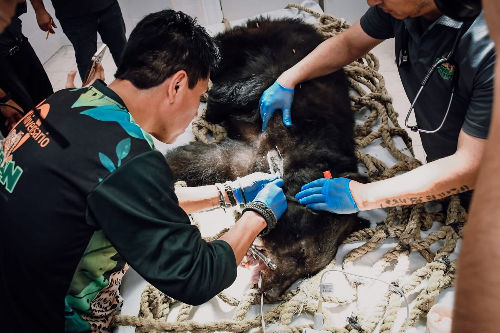 La madre llegó muy delgada, con una fractura en el húmero derecho y algunas lesiones dentales, con una edad de entre 5 y 6 años, y sus crías con un mes aproximadamente.