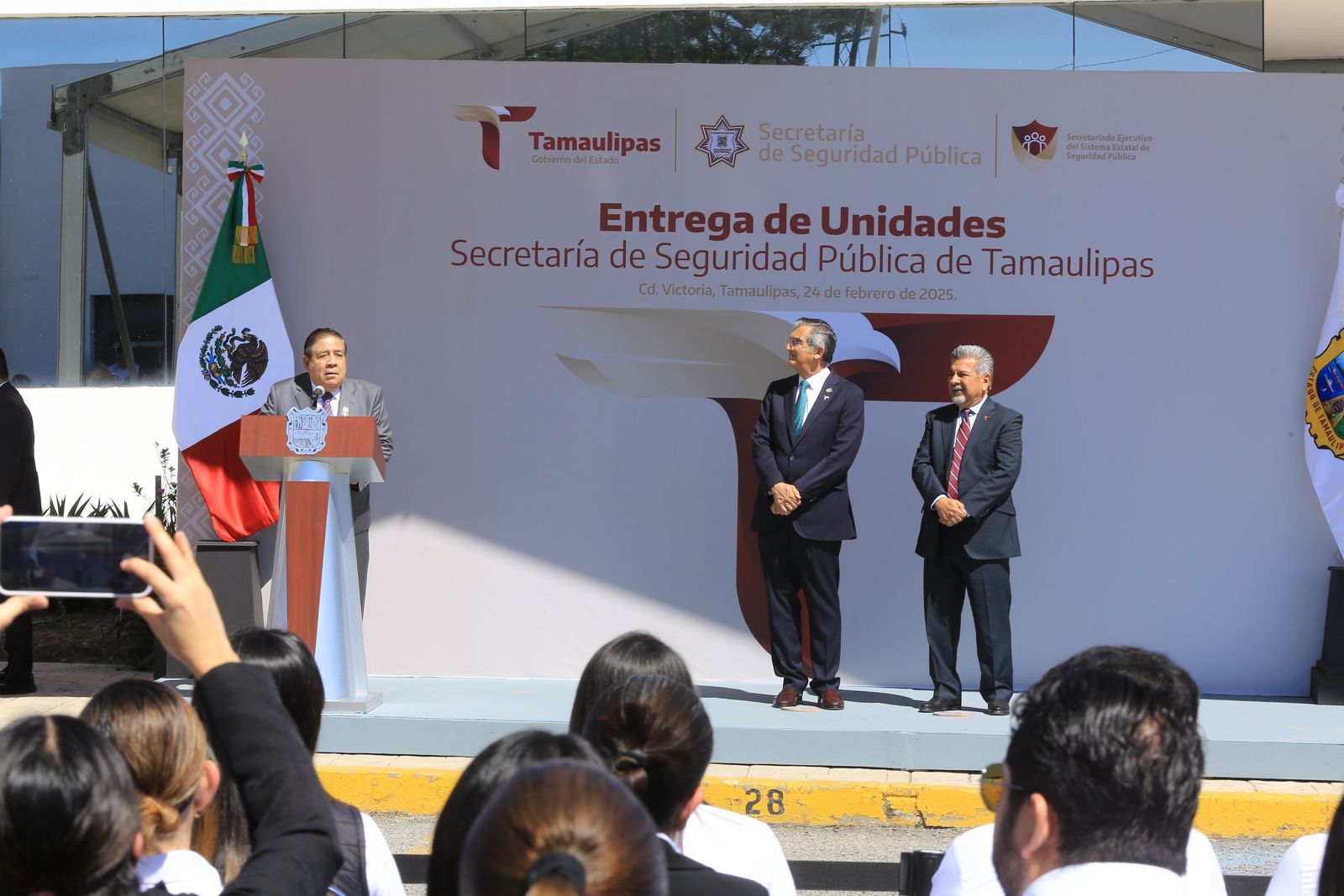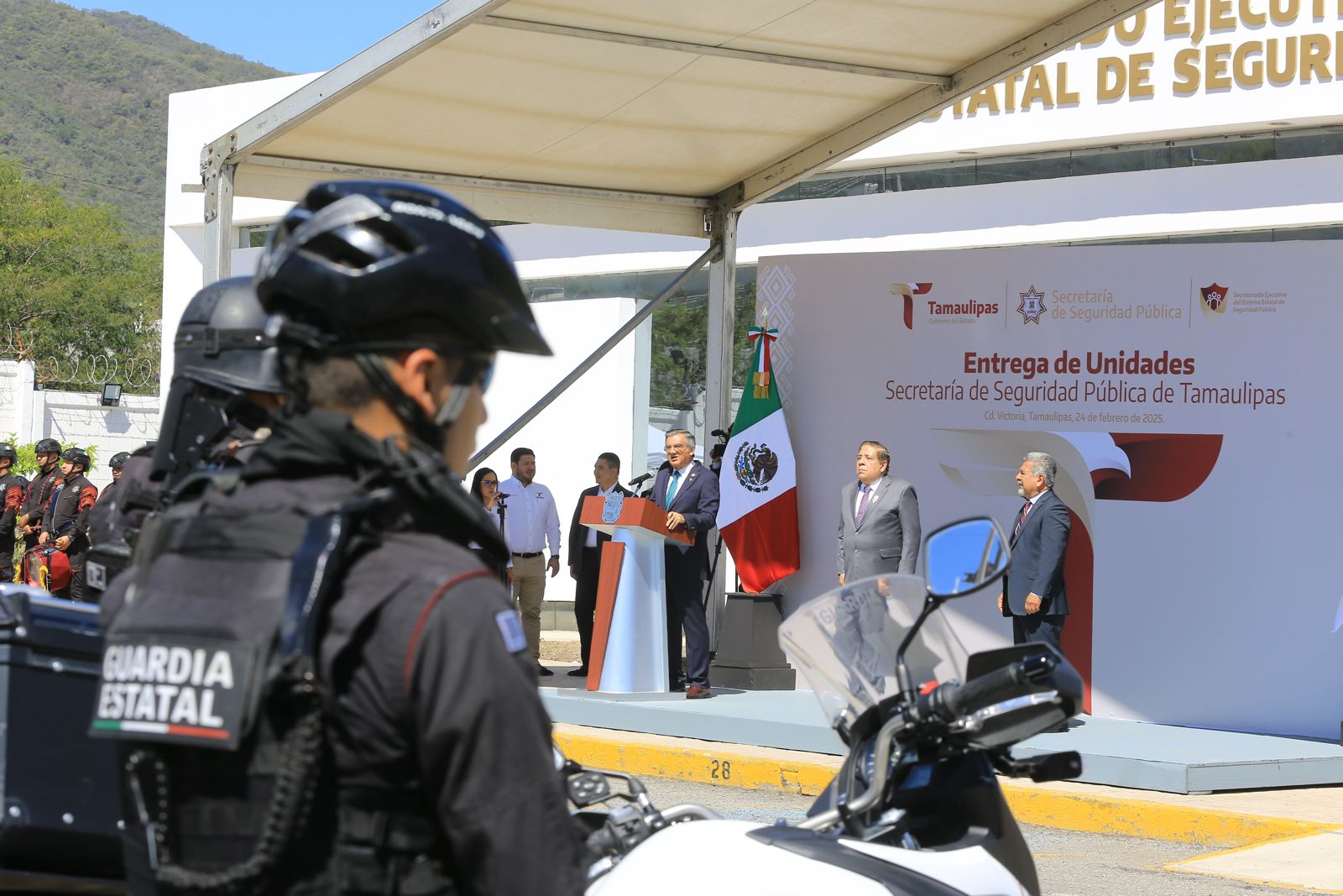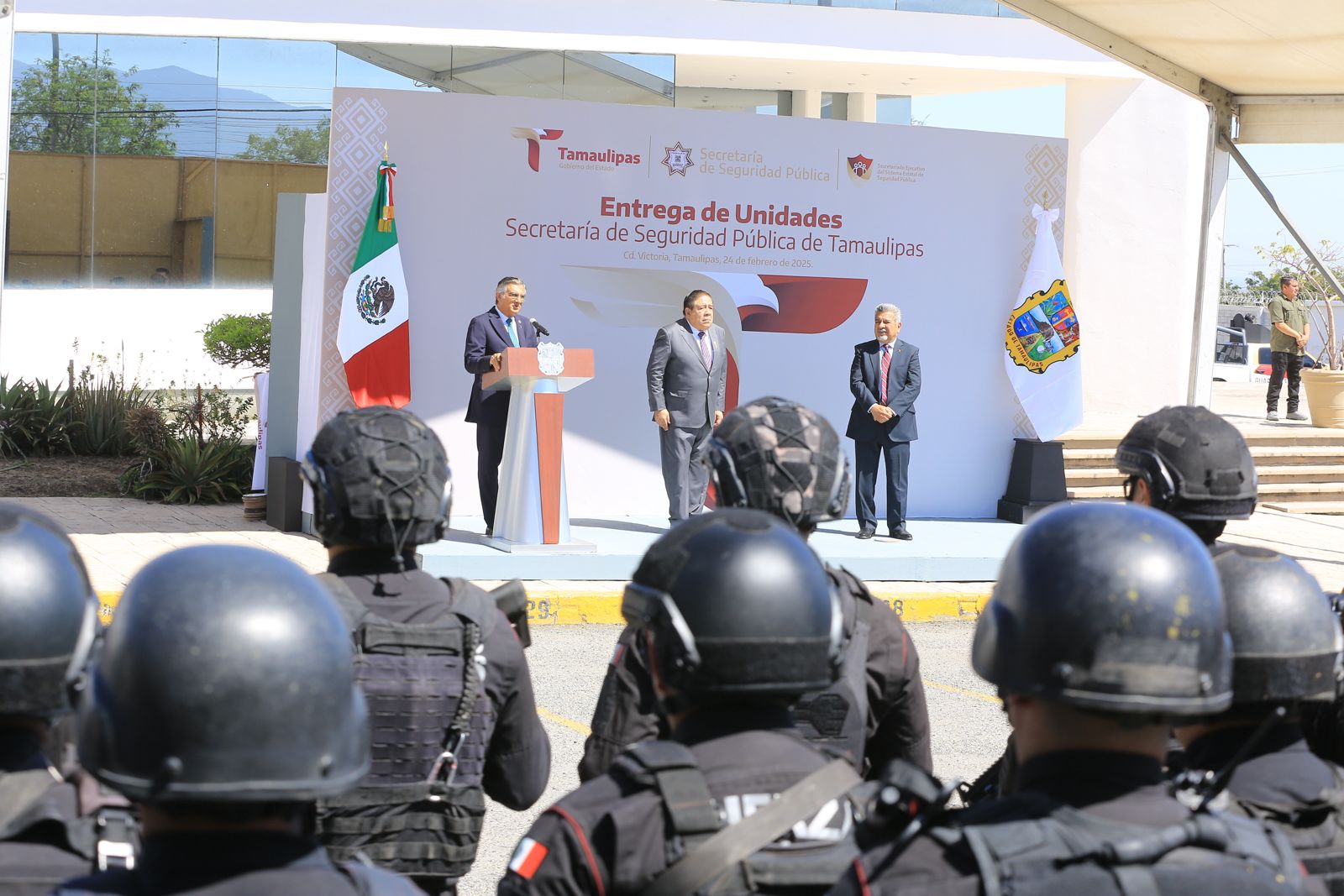 Por su parte, Sergio Chávez García, secretario de Seguridad Pública en Tamaulipas, destacó que la entrega de estas patrullas blindadas representa un esfuerzo del Gobierno del Estado para garantizar que los elementos que día con día participan en las tareas de seguridad cuenten con las mejores condiciones para desempeñar su labor.