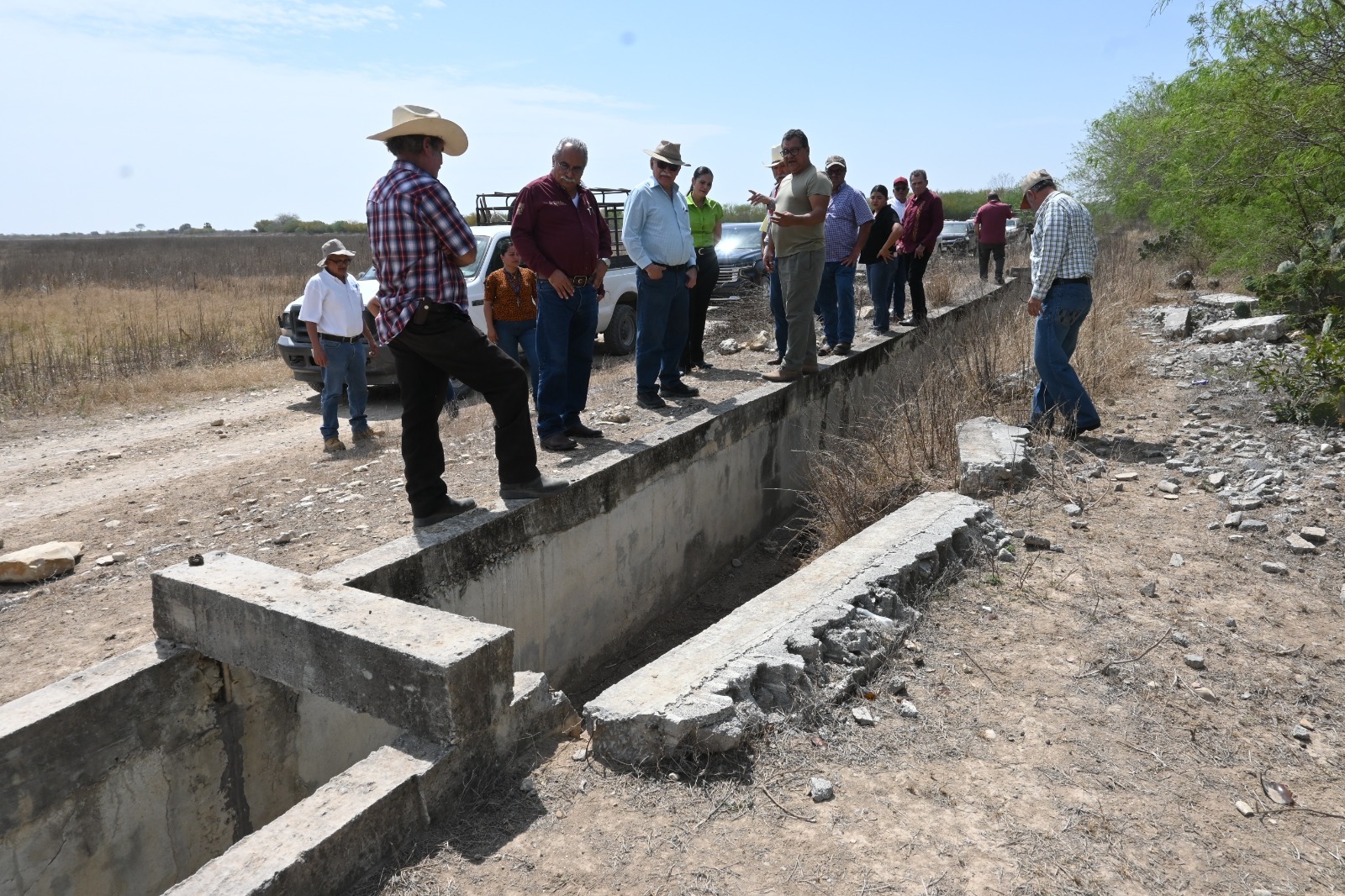 Atendiendo la solicitud del Comité de Usuarios de Riego, el secretario de Desarrollo Rural, Pesca y Acuacultura, Antonio Varela Flores, acompañado por el director de Infraestructura Hidroagrícola de la Gerencia Regional, Jaime Cano Pérez y la presidenta municipal de Jiménez, Corina Garza Arreola, realizaron un recorrido de supervisión por la unidad de riego “La Loba”, ubicada en el municipio de Jiménez.