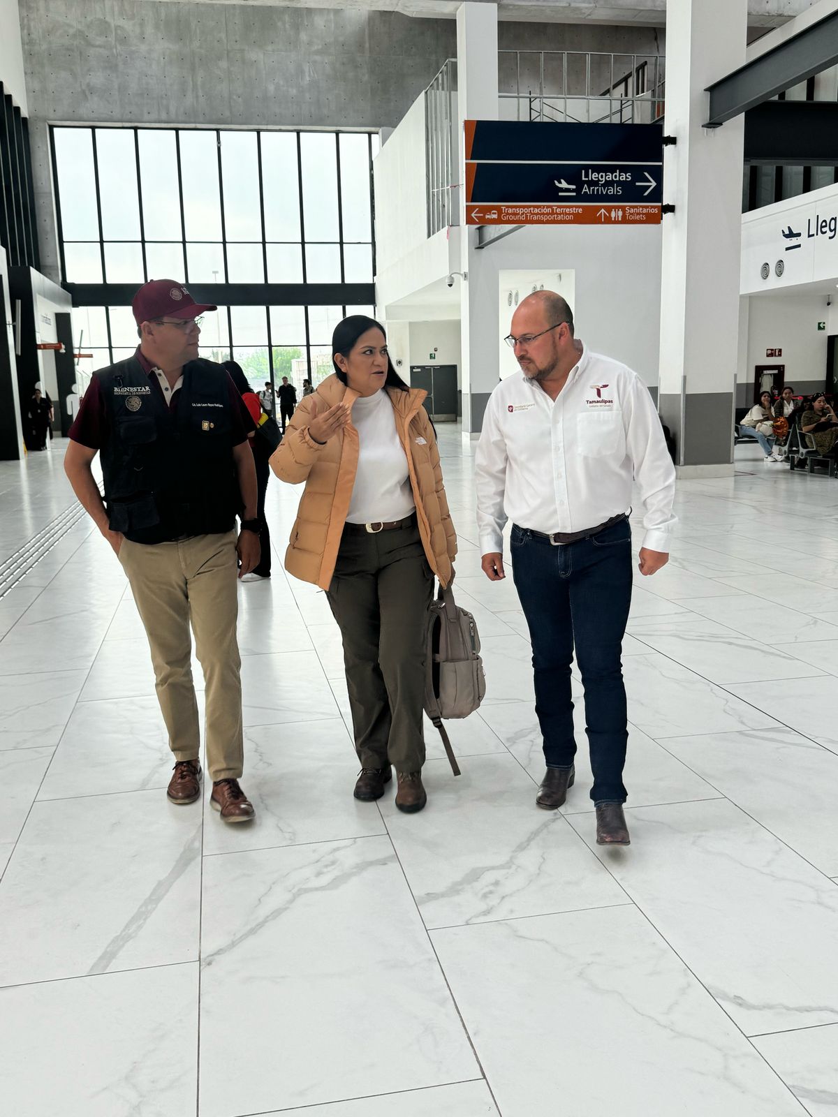 La secretaria de Bienestar federal, Ariadna Montiel Reyes, arribó esta mañana a Reynosa y fue recibida por el secretario general de Gobierno, Héctor Joel Villegas González.