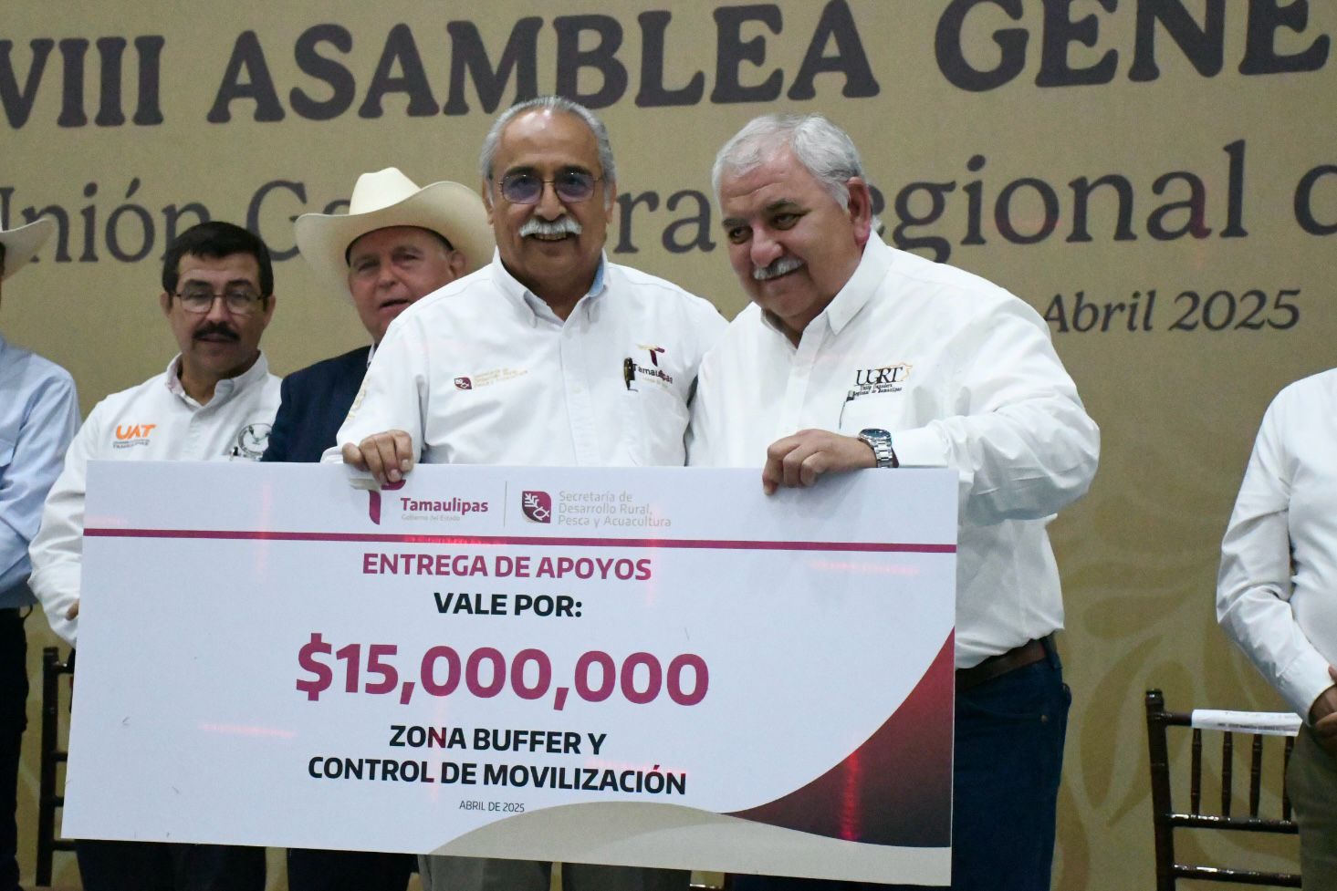 El secretario de Desarrollo Rural, Pesca y Acuacultura, Antonio Varela Flores, asistió en representación del gobernador Américo Villarreal Anaya a la LXXXVIII Asamblea General Ordinaria de la Unión Ganadera Regional de Tamaulipas (UGRT), evento que reunió a líderes de organizaciones ganaderas, diputados federales, presidentes municipales y productores pecuarios de todo el estado y donde informó que el gobernador Américo Villarreal Anaya ha destinado 49 MDP para el sector ganadero.