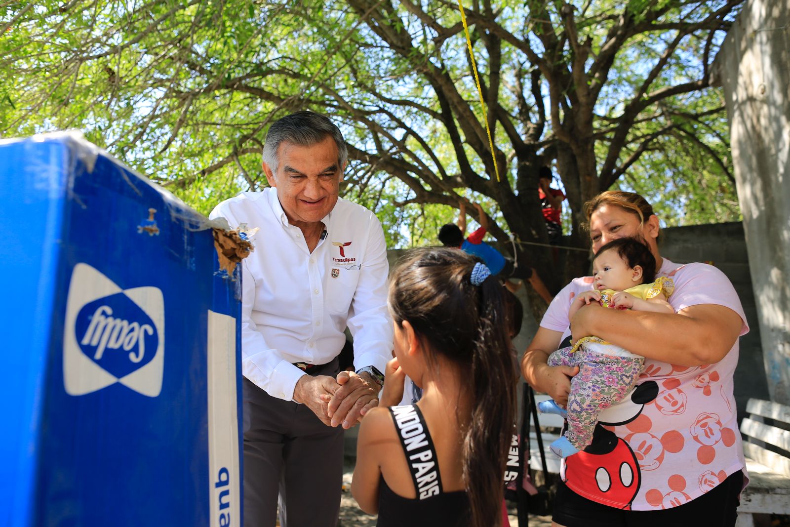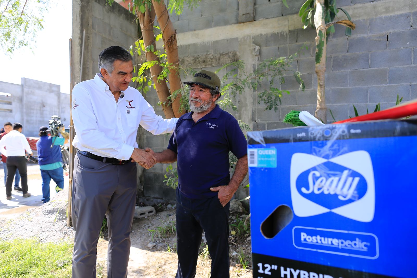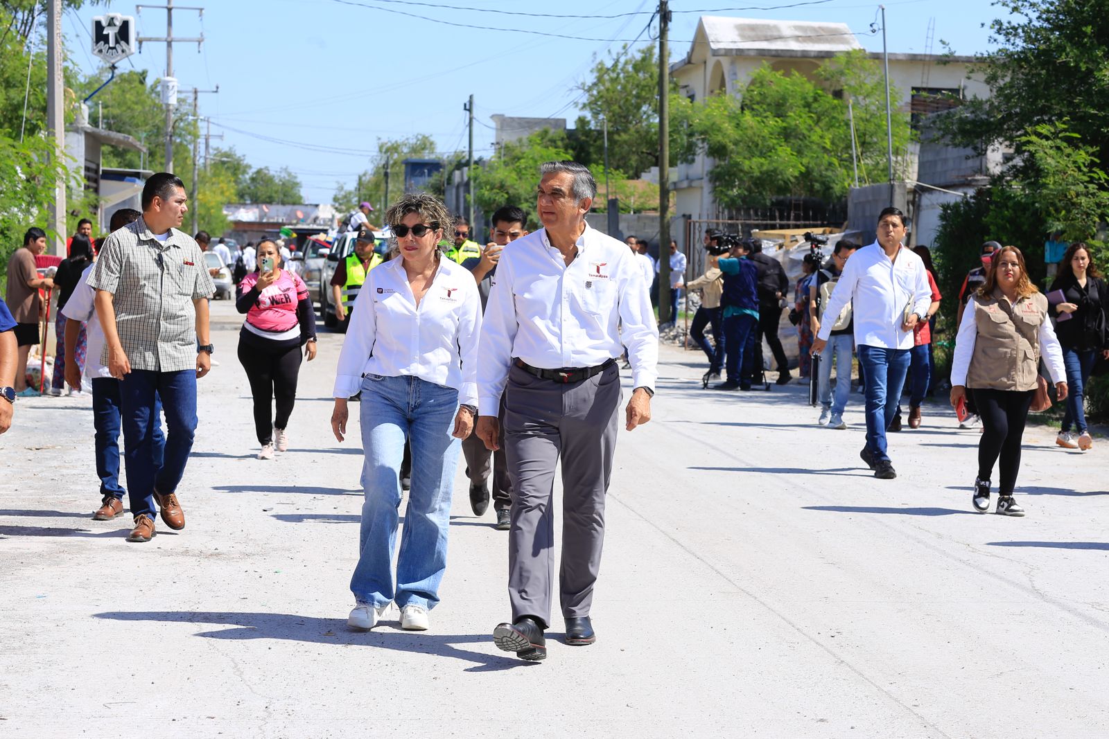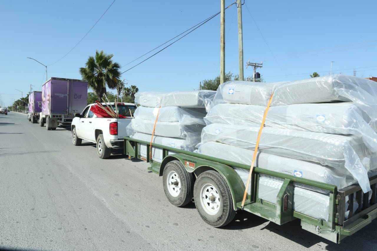 El gobernador Américo Villarreal Anaya y la presidenta del DIF Estatal, doctora María de Villarreal, encabezaron este sábado una jornada más de entrega de apoyos a familias que fueron afectadas por las lluvias en la colonia Juan Escutia, de Reynosa.