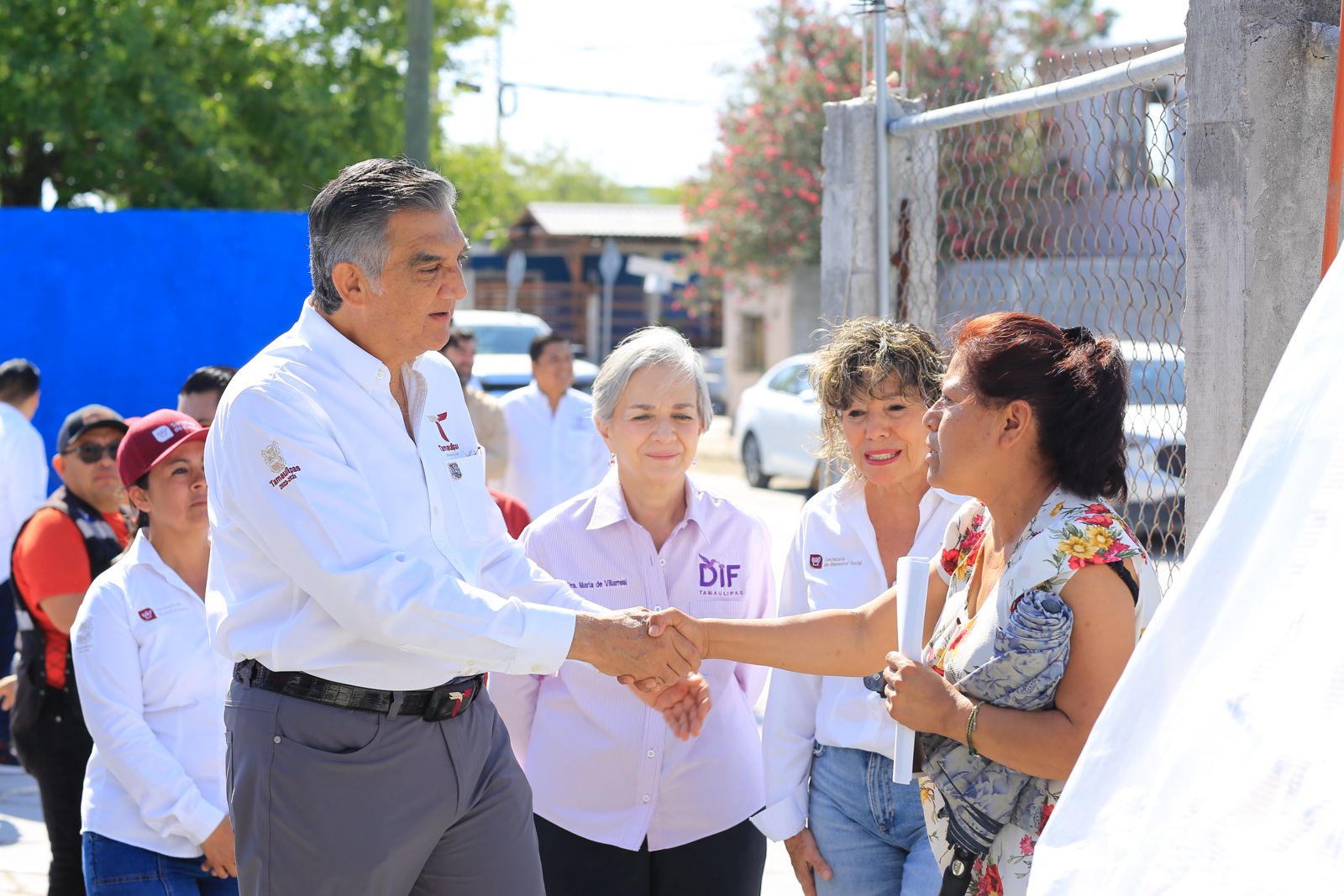 Al llegar a la casa de doña Chelo, una reconocida líder de esta colonia por más de 30 años, Américo Villarreal fue recibido con un «gracias por todo, es usted un gobernador excelente«.