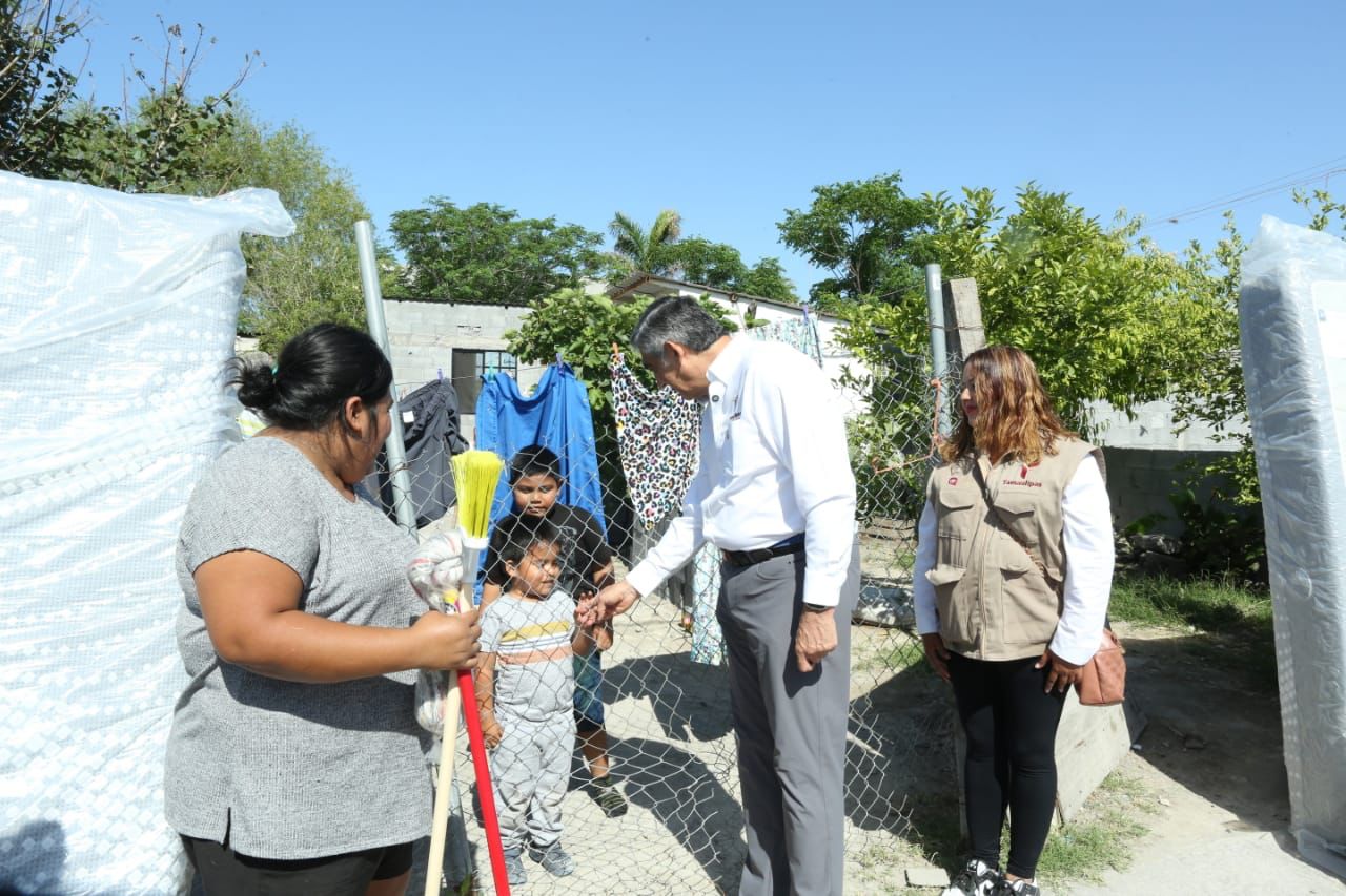 «No los vamos a dejar solos; aquí estamos presentes para ayudarlos», les expresó el gobernador al visitar casa por casa, en donde dialogó con las familias damnificadas y les entregó despensas, kits de limpieza y colchones, y además les reiteró el compromiso de la presidenta Claudia Sheinbaum, quien este viernes también estuvo ahí y anunció los apoyos federales, además de escuchar de manera directa sus necesidades.