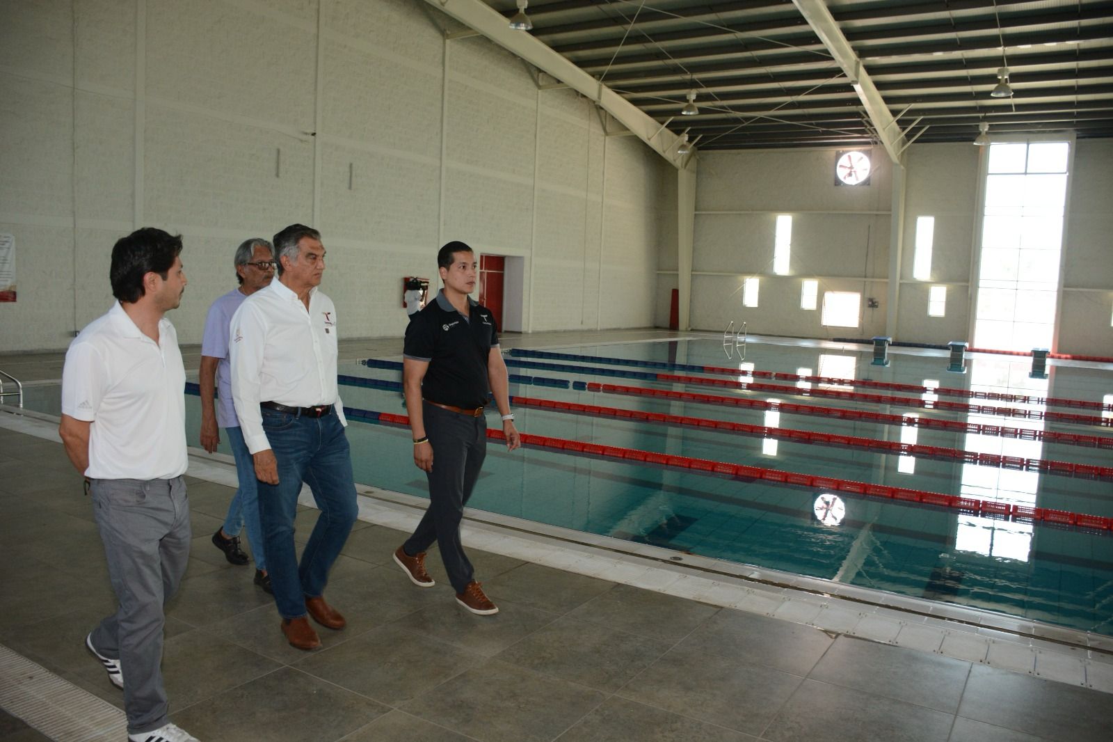 Enseguida, el gobernador supervisó los trabajos de rehabilitación en la alberca olímpica y en la fosa de clavados. Además, acompañado por el director general del Instituto del Deporte, Manuel Virués Lozano, hizo un amplio recorrido por los diferentes espacios en donde se entrenan las y los deportistas tamaulipecos, e incluso saludó a las niñas integrantes del Club de Oro de gimnasia rítmica, que en ese momento realizaban sus rutinas bajo la dirección de la entrenadora Paola Jiménez.