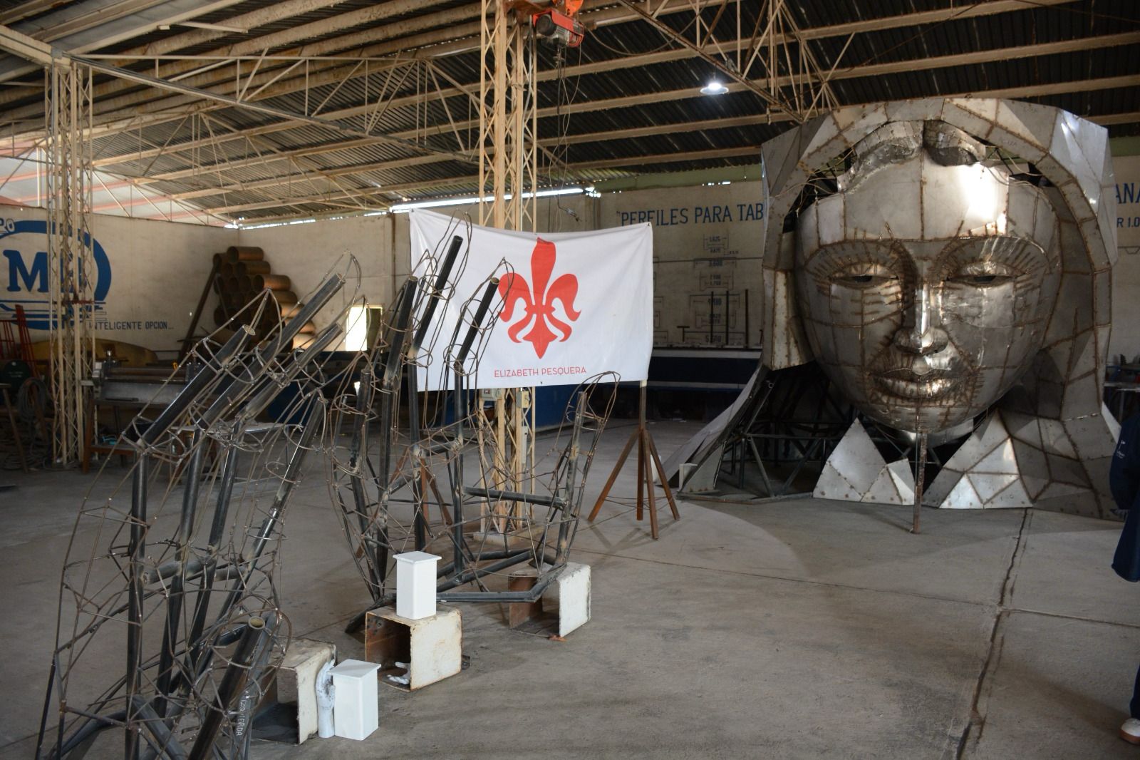 La escultora victorense Elizabeth Pesquera Caballero, acompañada por la directora del proyecto, Fernanda Saiz Pesquera, se mostró entusiasmada al informarle al gobernador que la gigantesca estructura se encuentra en la etapa de acabado.