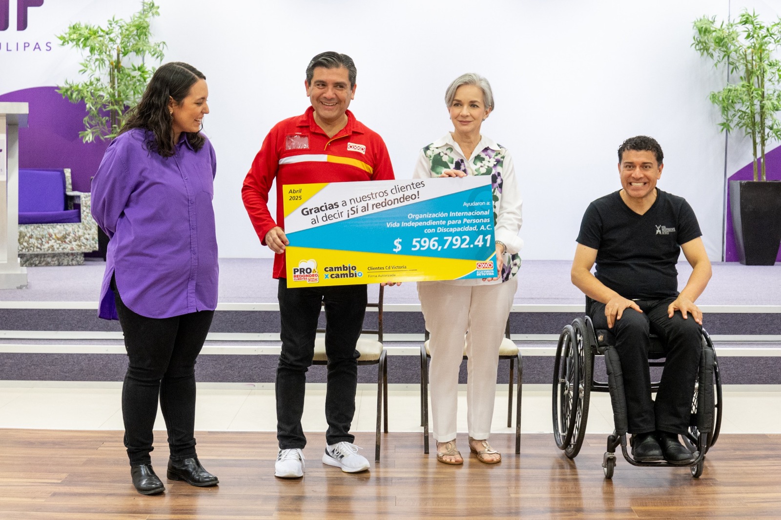 Como parte del trabajo colaborativo entre sociedad civil, iniciativa privada y gobierno, el Sistema DIF Tamaulipas que preside la doctora María de Villarreal, fue testigo de la entrega de un donativo por parte de la cadena comercial Oxxo para la organización internacional Vida Independiente para Personas con Discapacidad A.C.