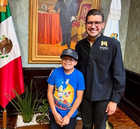 El Alcalde Beto Granados recibió en su oficina a Dylan Gael Orta Nodal, un niño matamorense que sueña con ser alcalde cuando sea grande. Acompañado por su abuelo, Dylan tuvo la oportunidad de conocer la sala Benito Juárez y el despacho del presidente municipal.