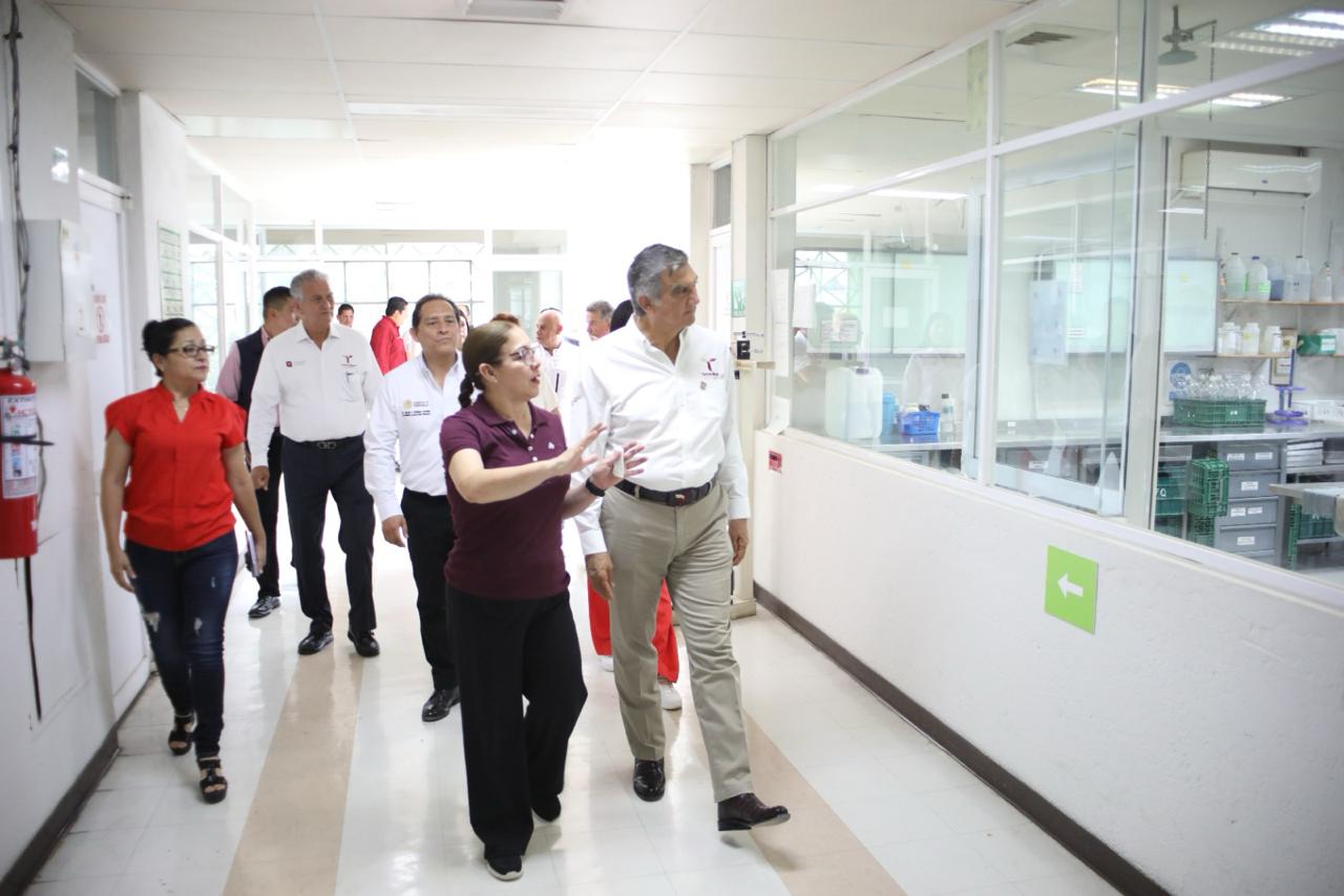 Como parte de su recorrido, el mandatario tamaulipeco también supervisó los trabajos que se realizan en las diferentes áreas del Laboratorio Estatal de Salud Pública.
