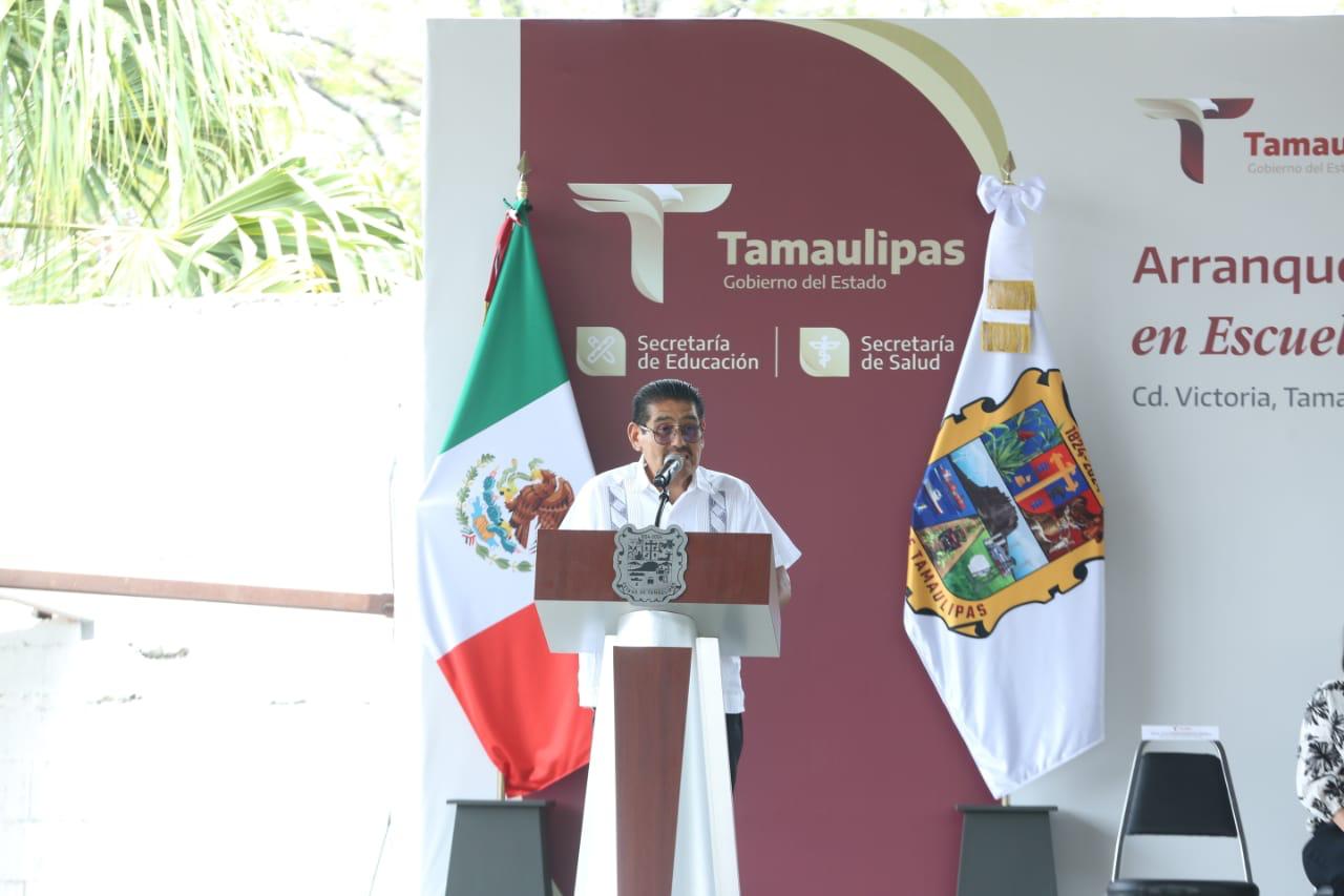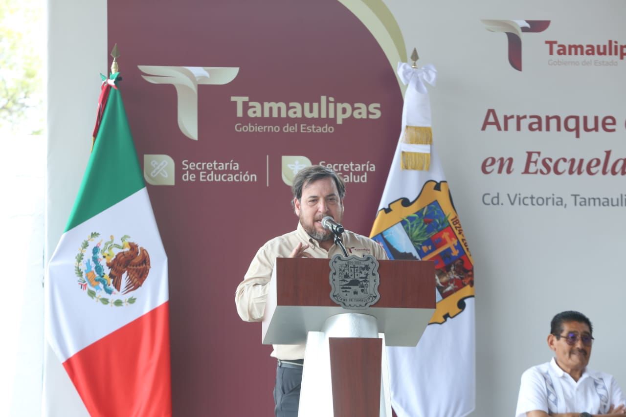 El secretario de Educación, Miguel Ángel Valdez García afirmó que tal como lo han dispuesto la presidenta Claudia Sheinbaum y el gobernador Américo Villarreal, en los planteles de Tamaulipas se fomenta la cultura de una vida saludable que permitirá hacer de las escuelas públicas lugares de felicidad, de alegría, donde no solo lo cognitivo, sino también lo afectivo y la parte de la salud física y emocional sea una realidad y para que “estos niños, como lo proclama el humanismo mexicano, sean seres comprometidos felices y sobre todo, muy solidarios con los demás”, dijo.