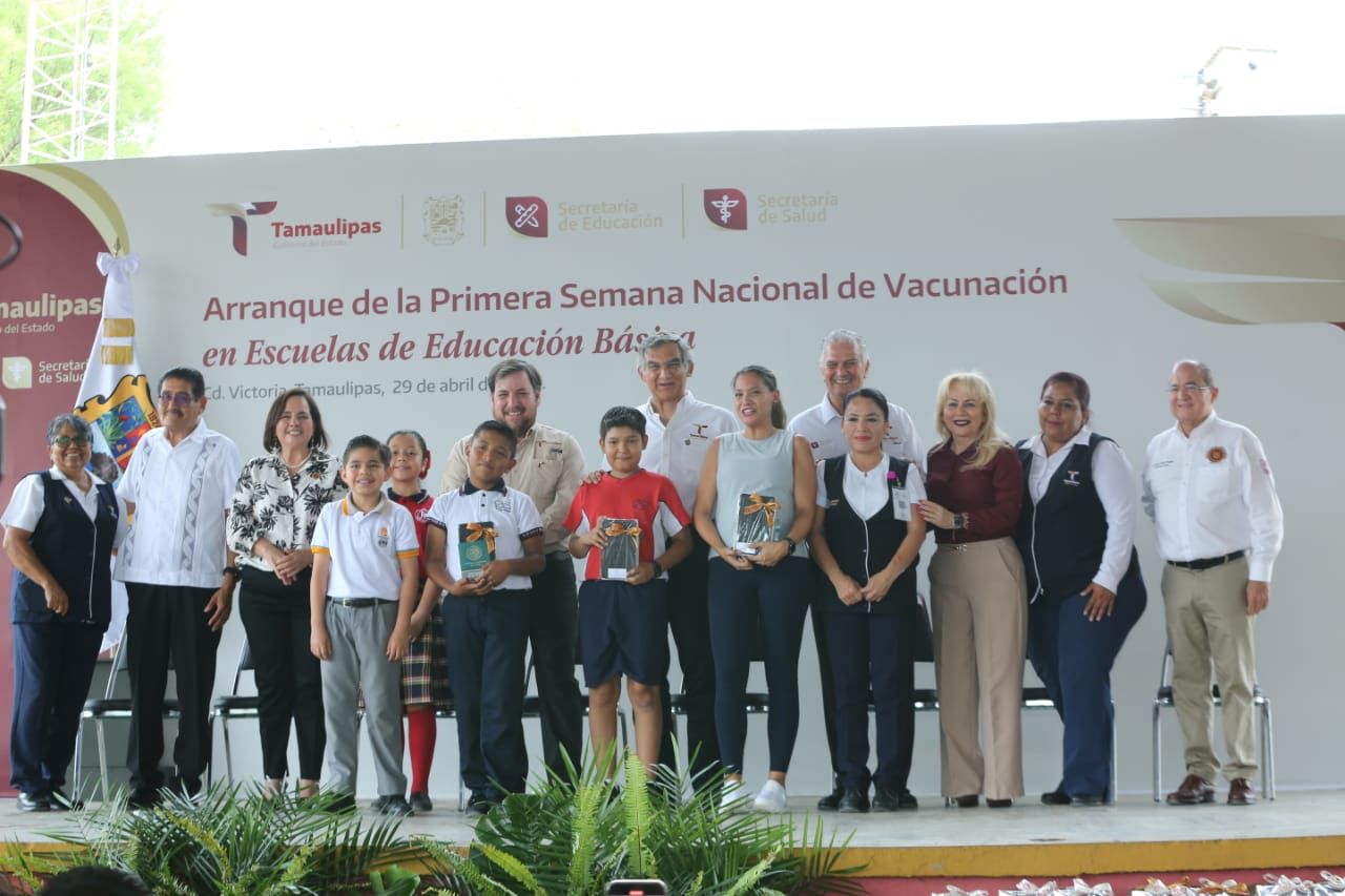 Como parte del inicio de la Semana Nacional de Vacunación en escuelas de educación básica, tres alumnos recibieron la aplicación del biológico, así como a una madre de familia embarazada.