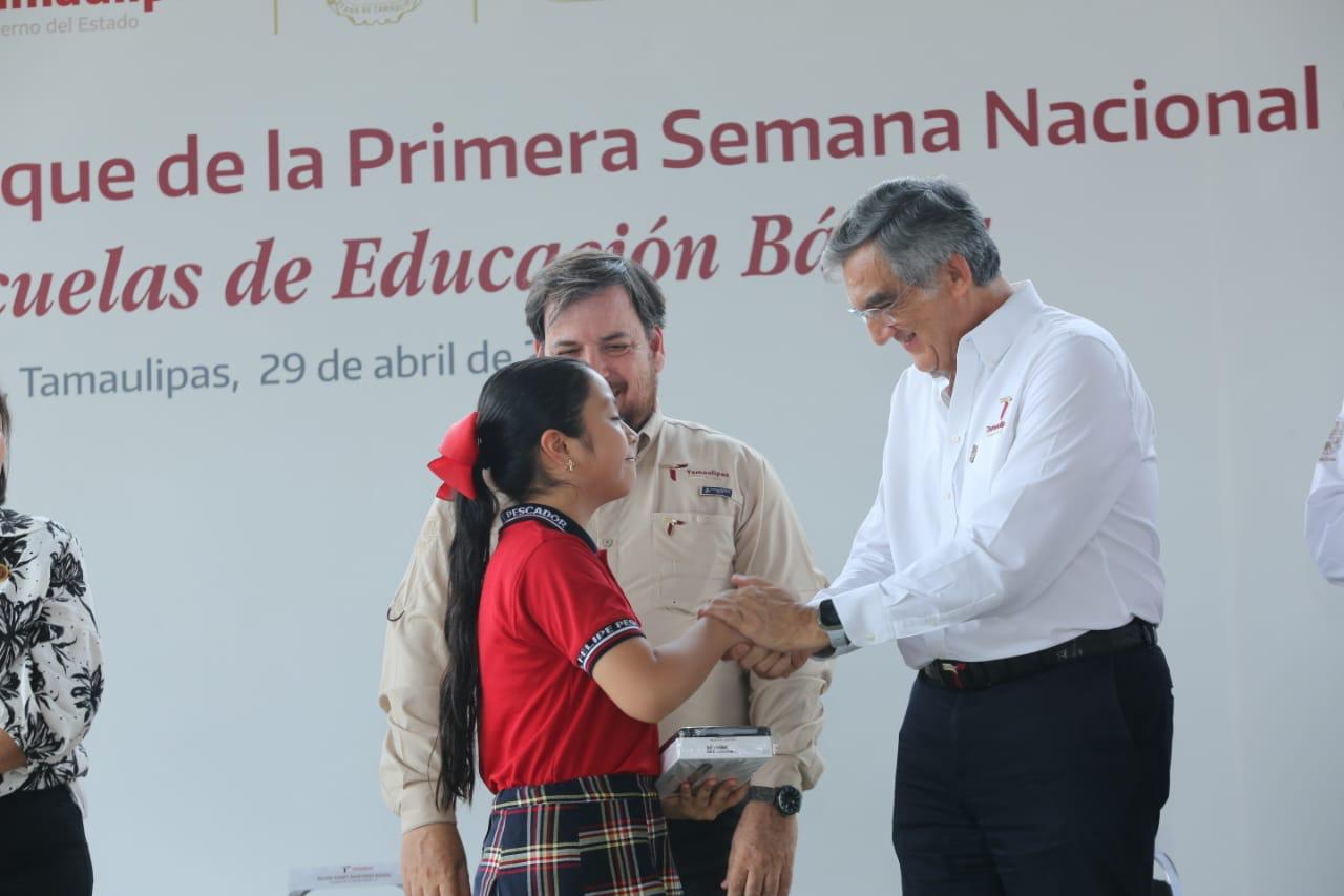 “Su compromiso que contrajo algunas semanas atrás con esta comunidad educativa de esta escuela señor gobernador, hoy lo cumple con creces confirmando su calidad de persona y de gobernador comprometido con la niñez tamaulipeca”, mencionó.