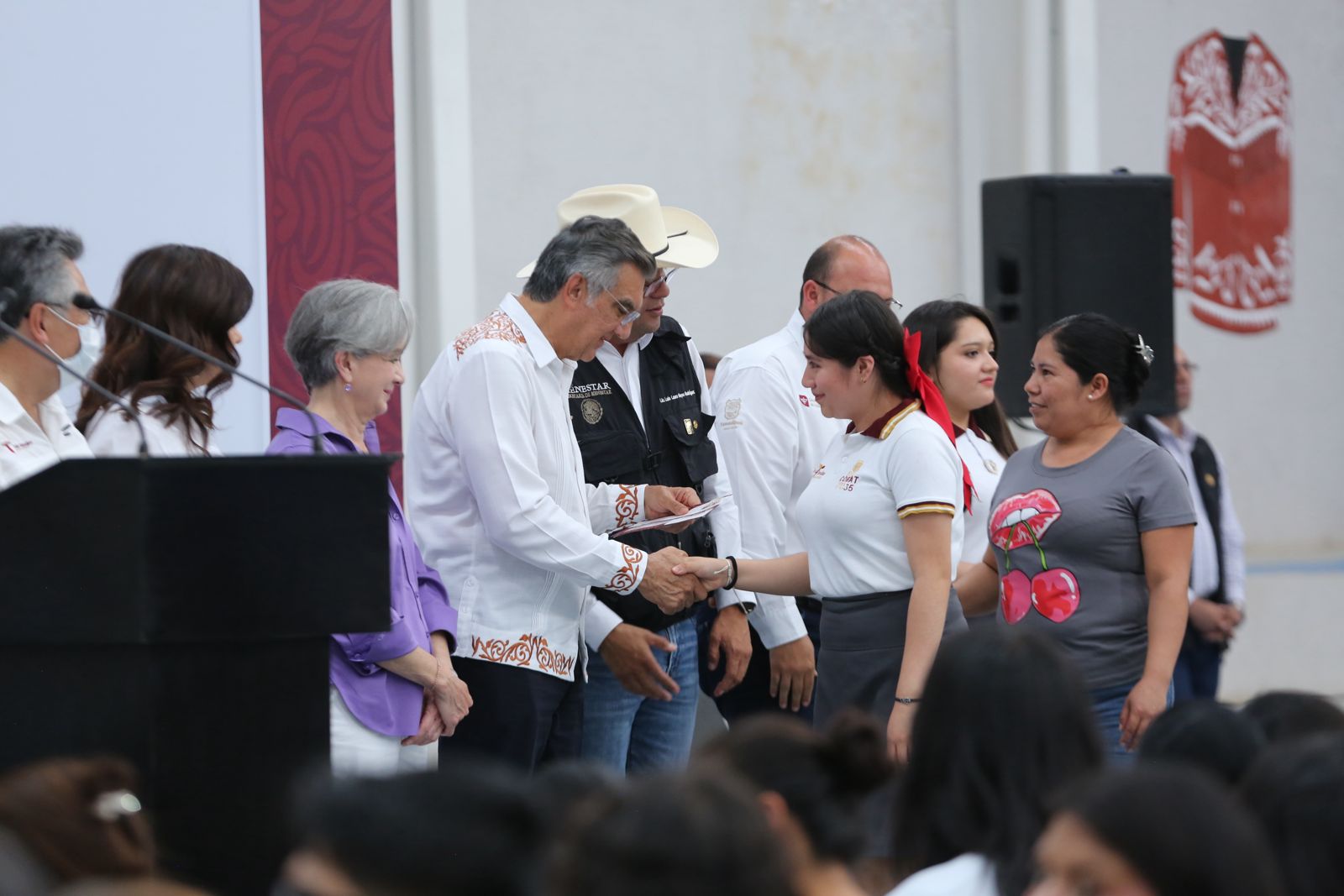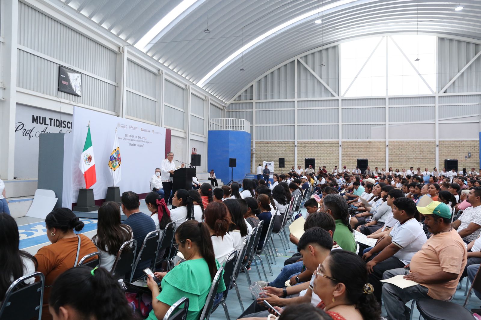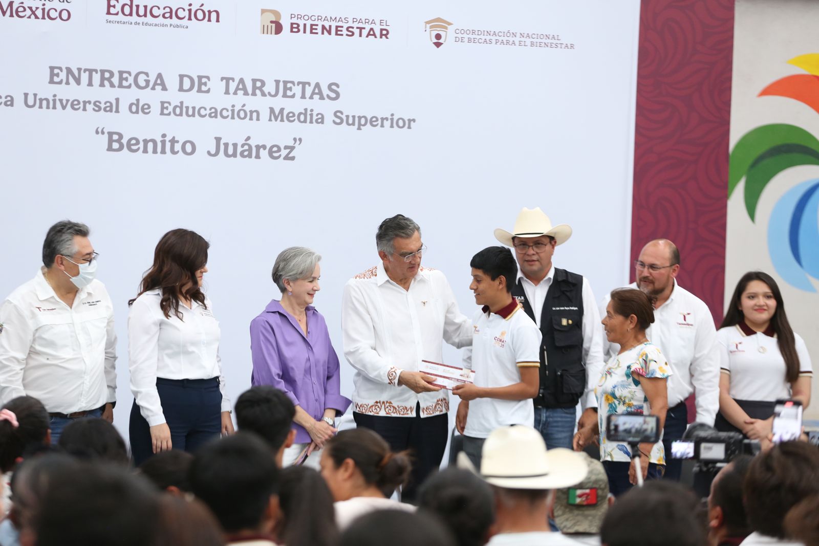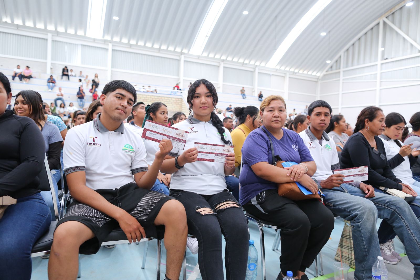 Durante la ceremonia en el Auditorio Multidisciplinario «Profesor Ángel Inurrigarro Zapata», se entregaron apoyos de dos bimestres, lo que representa 3,800 pesos a más de 300 alumnos del Colegio de Bachilleres de Tamaulipas extensión Tula; CBTA 117 y el Telebachillerato Comunitario 027.