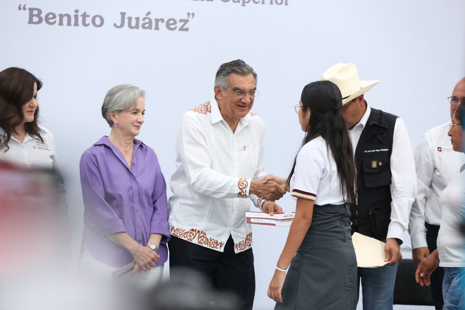 En el evento acompañaron al gobernador: Héctor Joel Villegas González, secretario general de Gobierno; René Lara Cisneros, presidente municipal de Tula, y Nadia Ochoa Becerra, titular de la Oficina de Representación en Tamaulipas de la Coordinación Nacional de Becas para el Bienestar “Benito Juárez”.