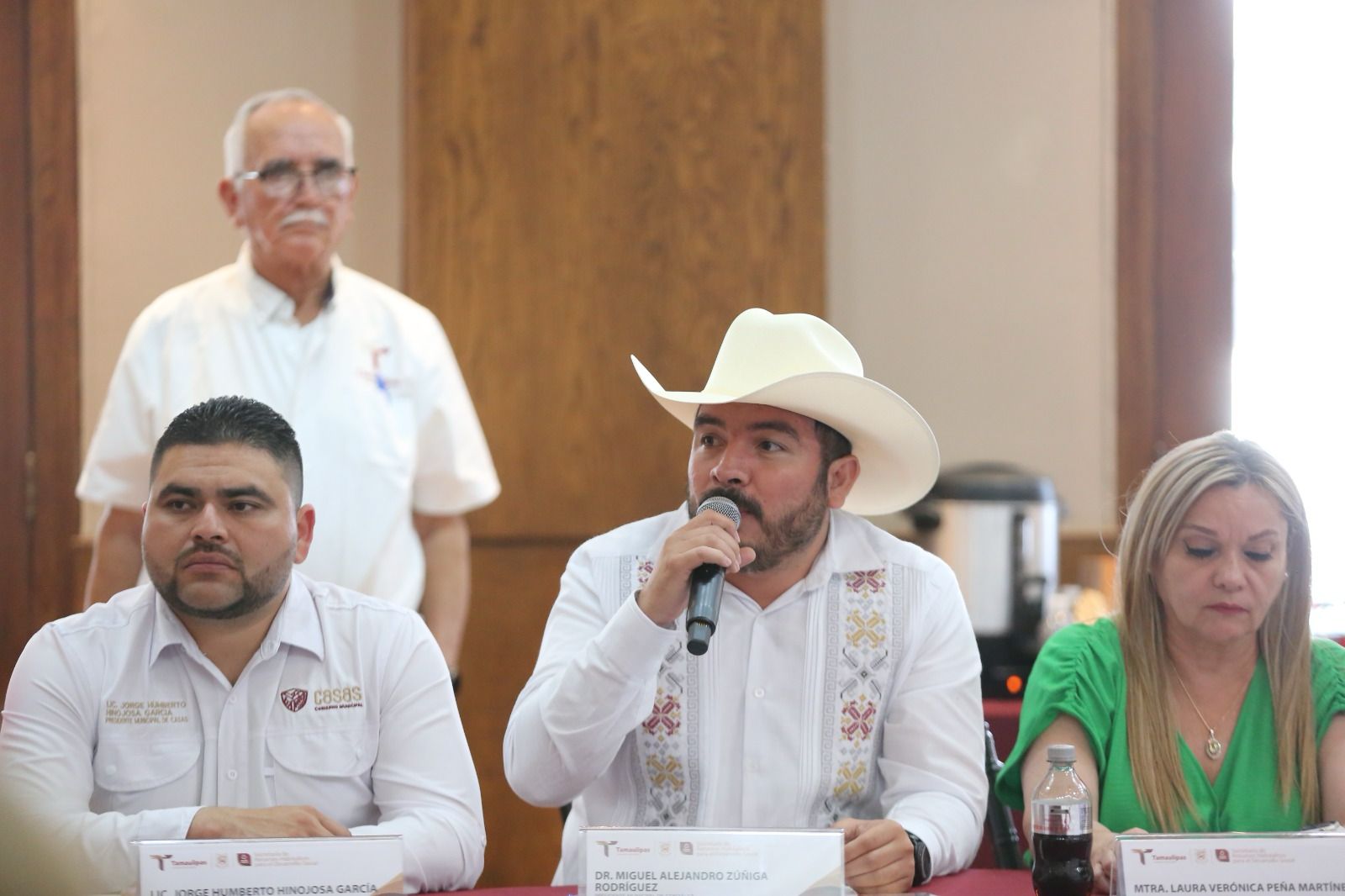 En la reunión también se contó con la asistencia de: Héctor Joel Villegas González, secretario general de Gobierno; Silvia Casas González, secretaria de Bienestar; Jesús Lavín Verástegui, secretario de Finanzas, y Pedro Cepeda Anaya, secretario de Obras Públicas.