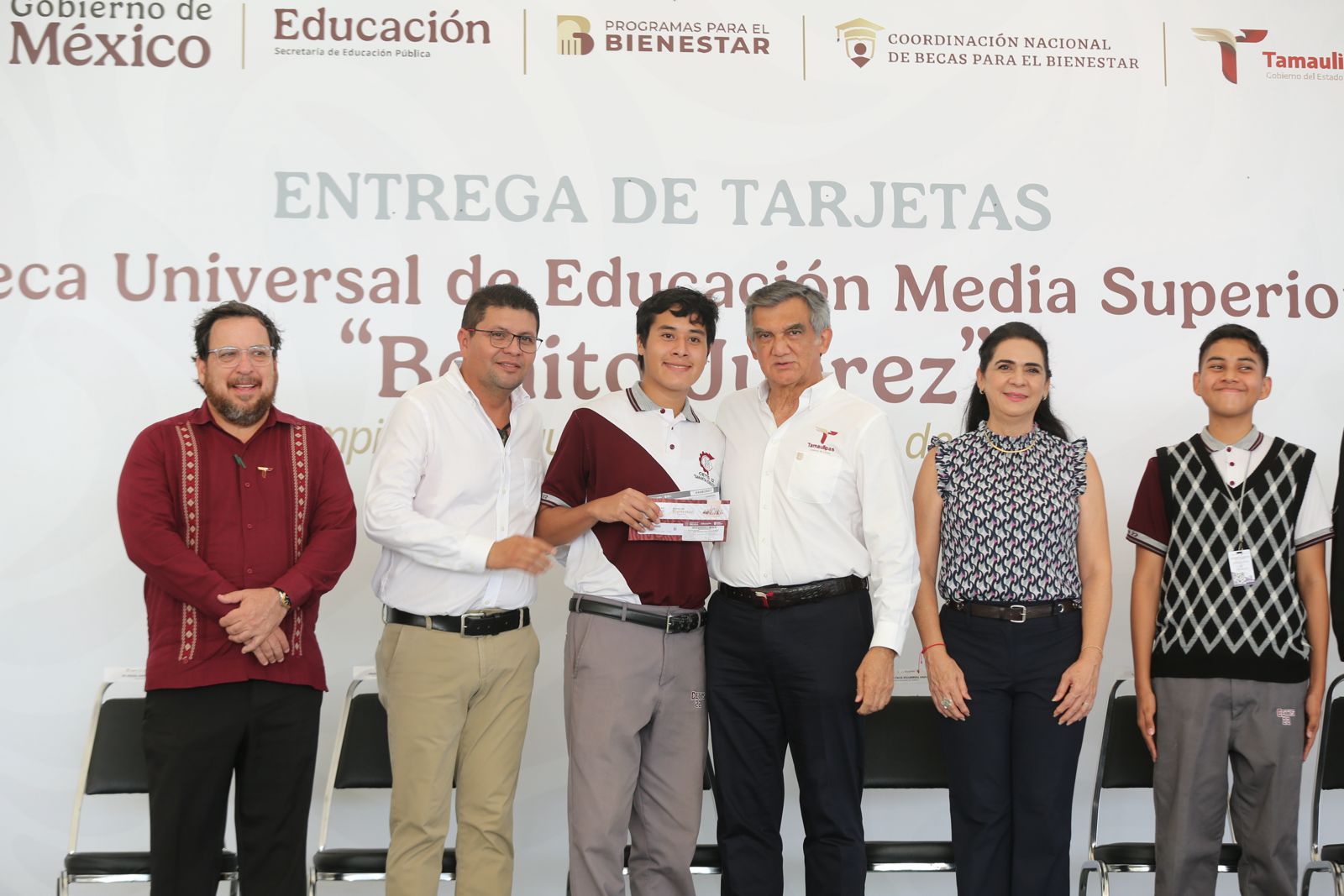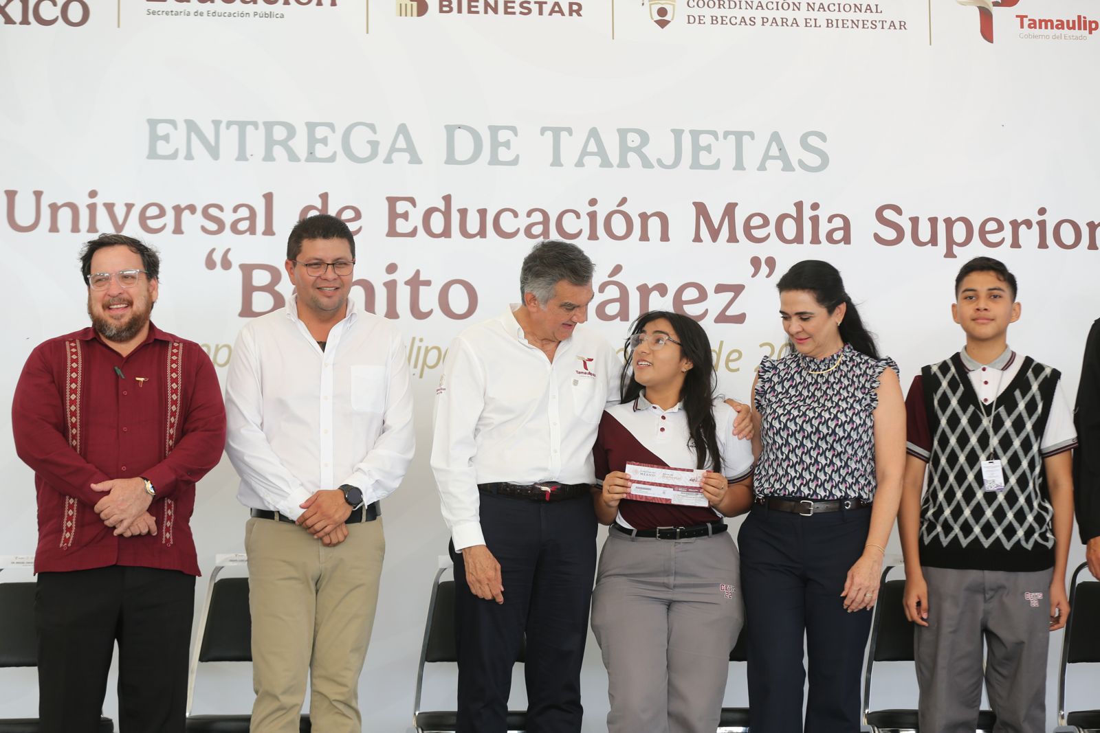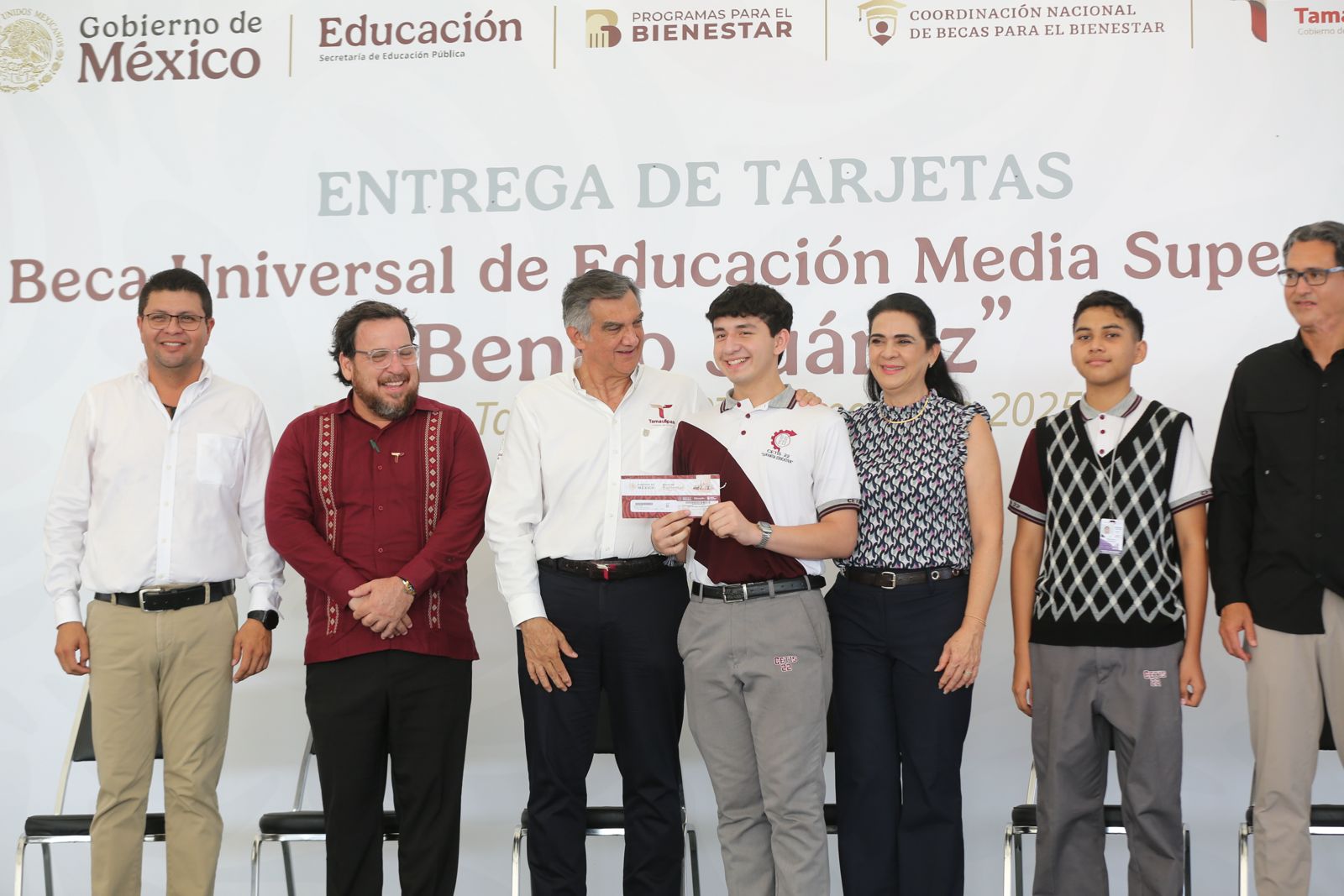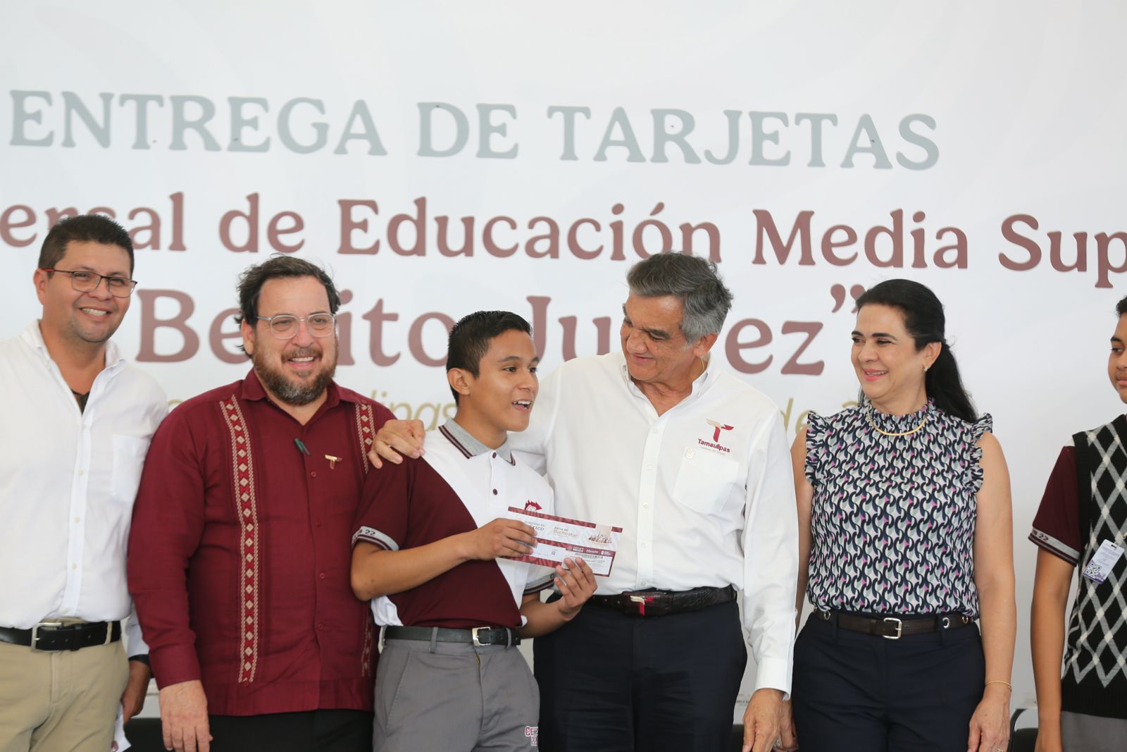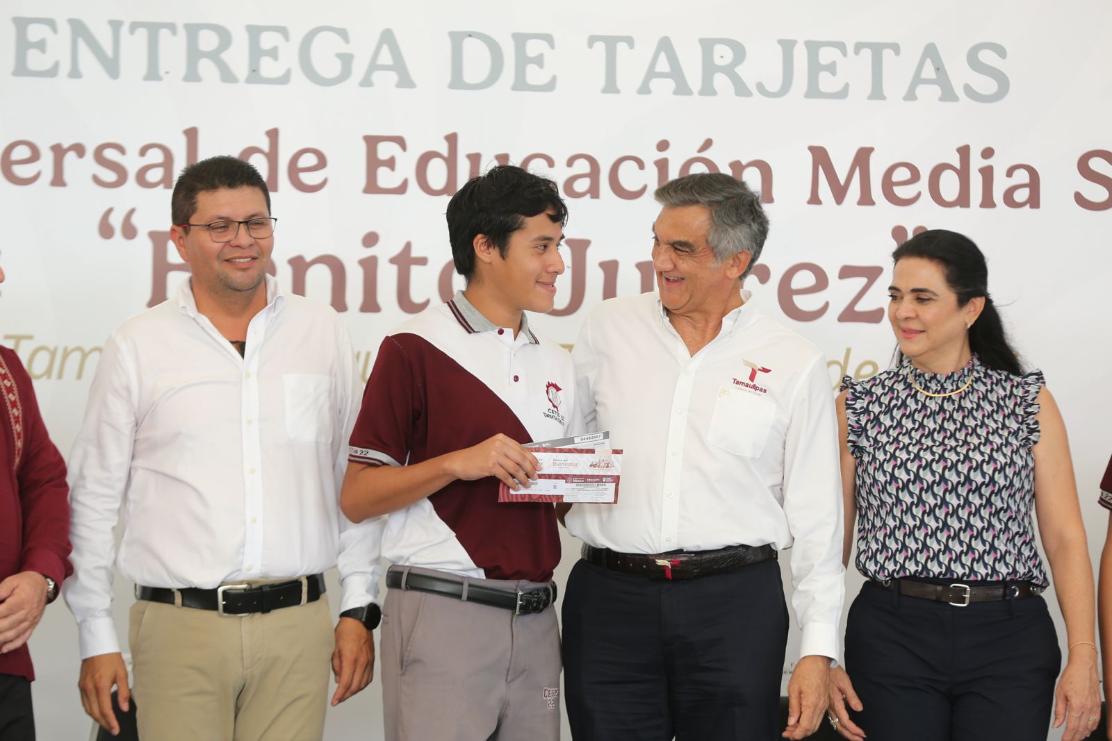 Un total de 450 alumnos del CETIS número 22, turno matutino, de esta ciudad, recibieron de manos del gobernador Américo Villarreal Anaya y del delegado de Bienestar Federal, Luis Lauro Reyes Rodríguez, las tarjetas de la Beca Universal de Educación Media Superior «Benito Juárez«, lo que representa la dispersión de un millón 710 mil pesos.