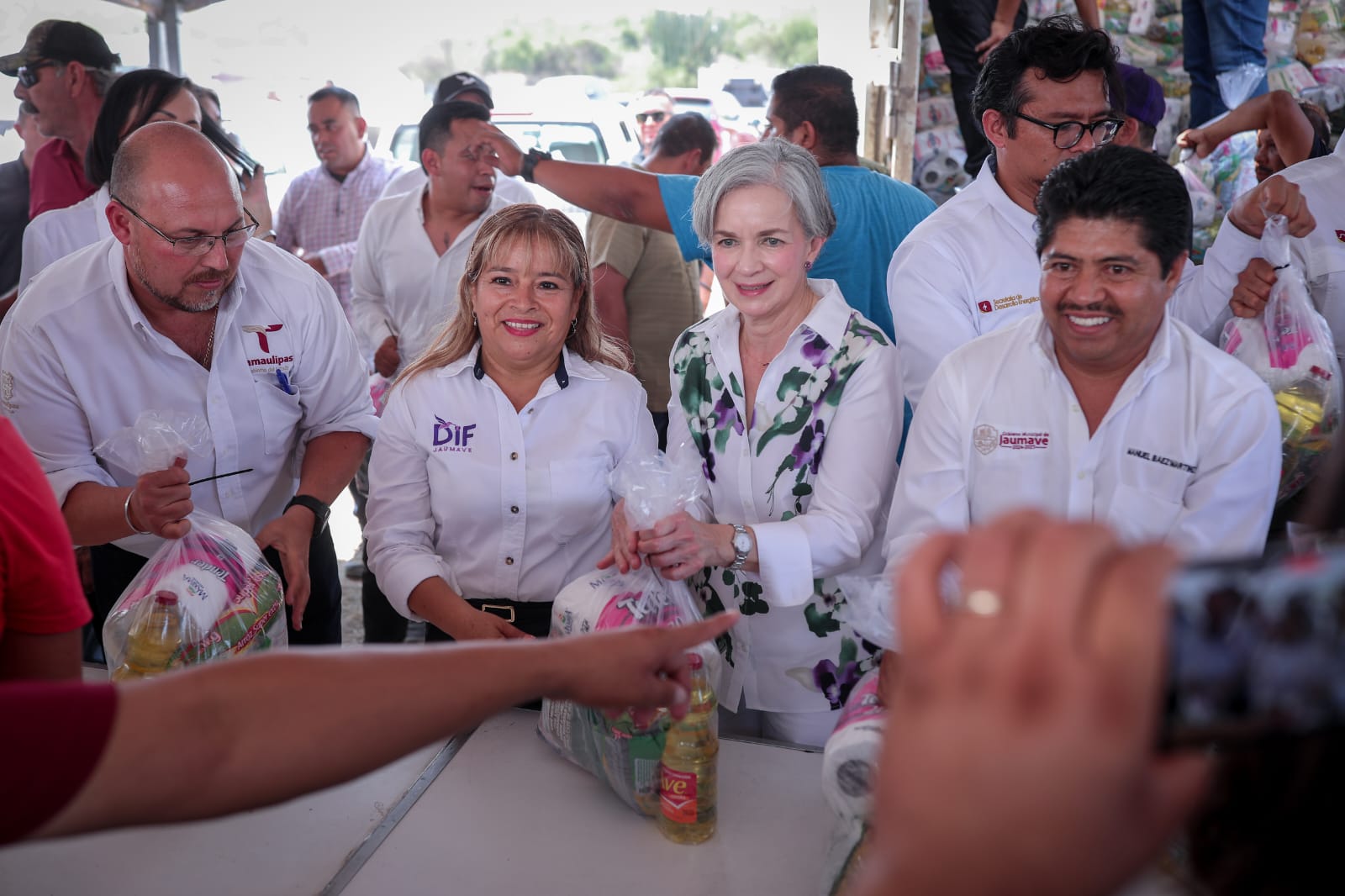 Durante la brigada, el gobernador del estado y la presidenta del DIF entregaron equipo para fortalecer la operación de los desayunadores escolares de Jaumave, así como 2 mil 400 apoyos alimentarios para igual número de personas y constataron los servicios ofrecidos a las familias durante la brigada Transformando Familias.