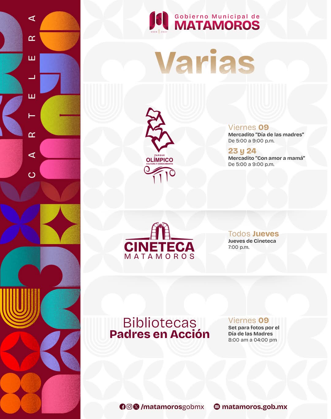 Para mayor información sobre fechas, horarios y sedes de las actividades, se recomienda consultar la cartelera oficial. El Gobierno de Matamoros espera contar con la participación de todos y hacer de este mayo un mes inolvidable para la comunidad.