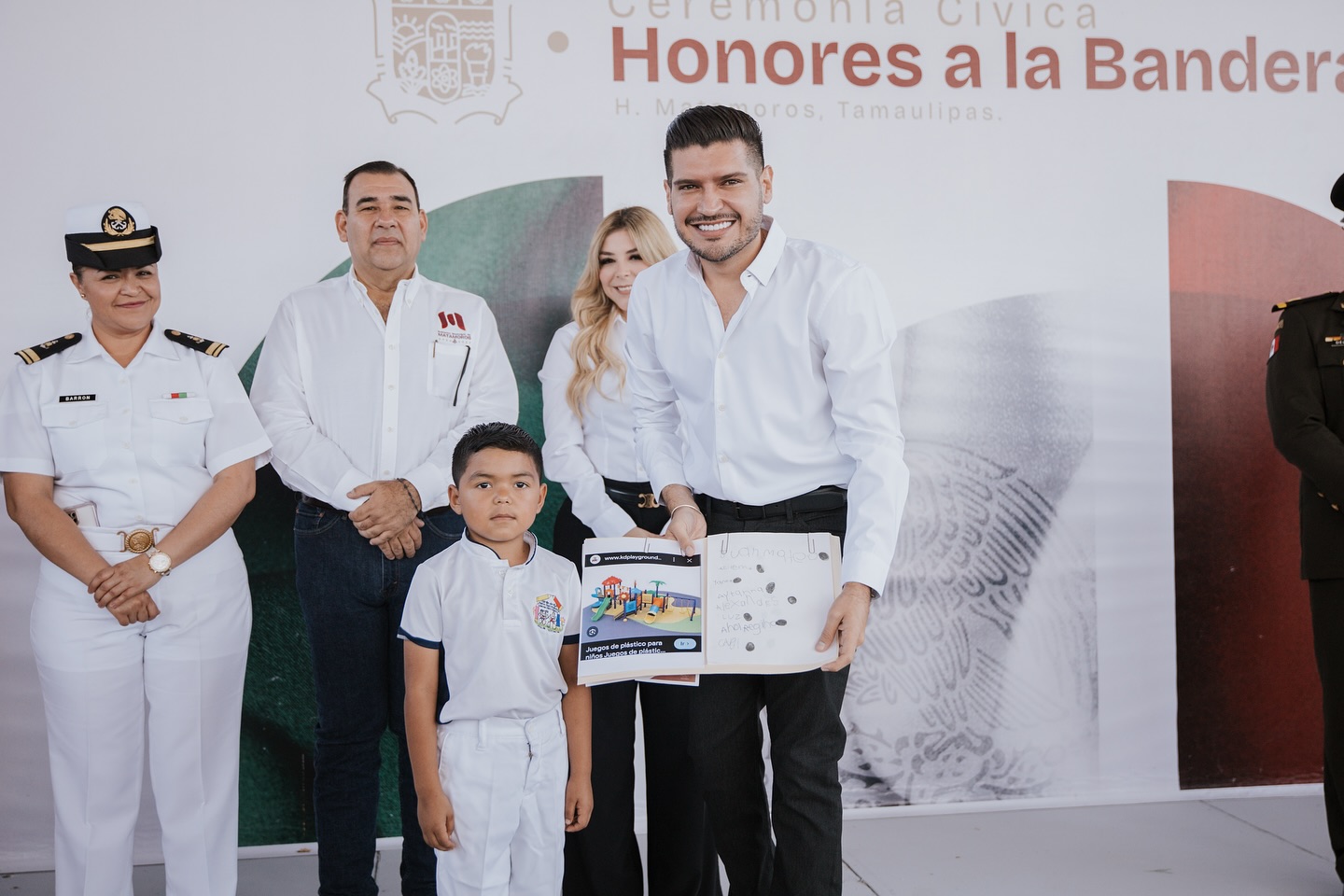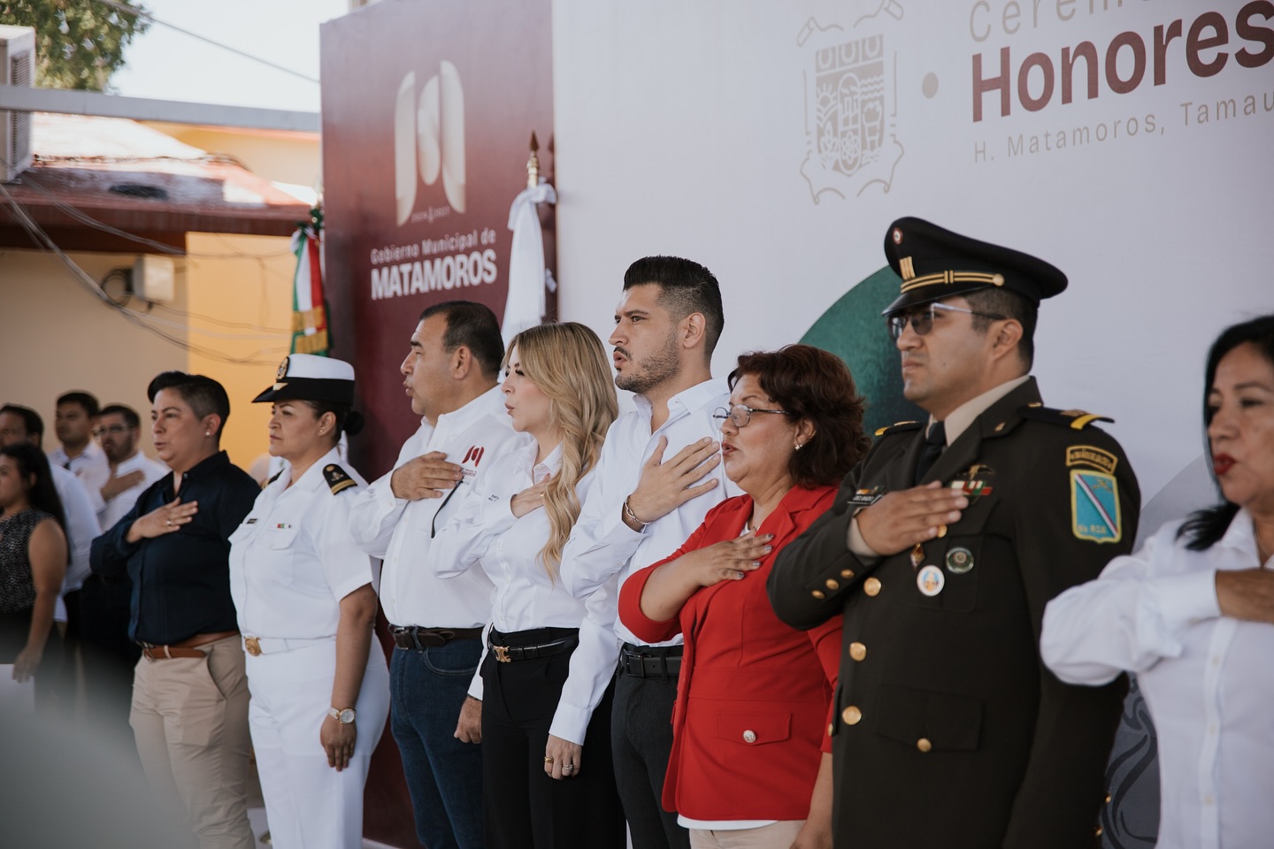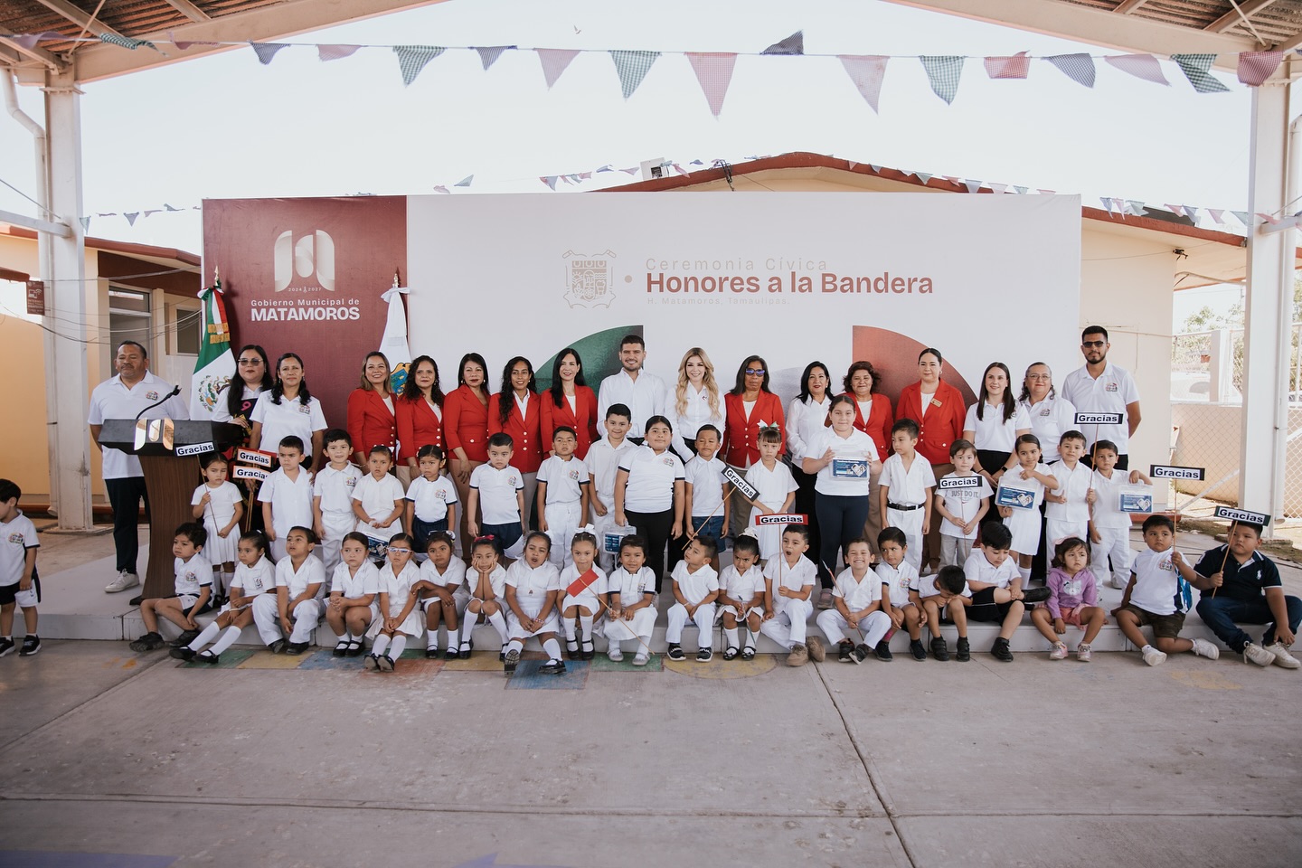 El alcalde de Matamoros, Beto Granados, encabezó esta mañana la Ceremonia de Honores a la Bandera en el Jardín de Niños Justo Sierra Méndez, donde compartió un emotivo momento con alumnas, alumnos, personal docente y padres de familia.