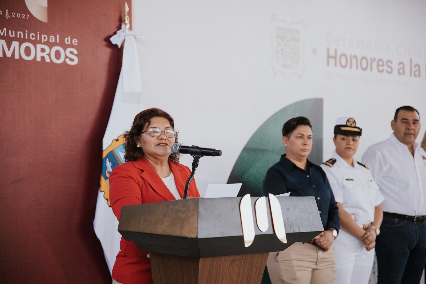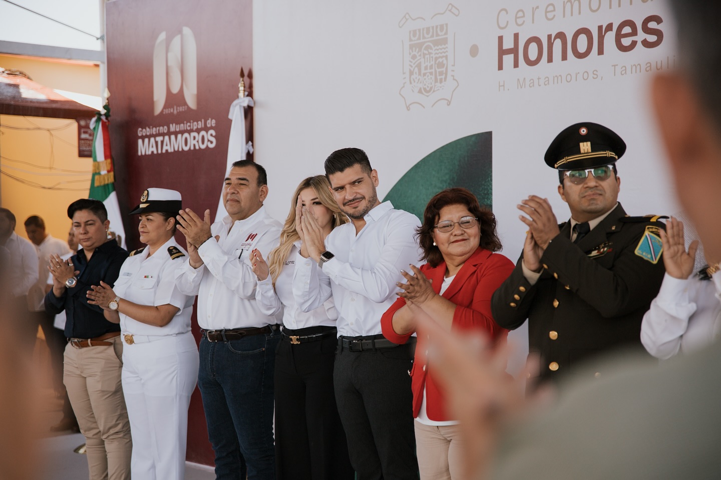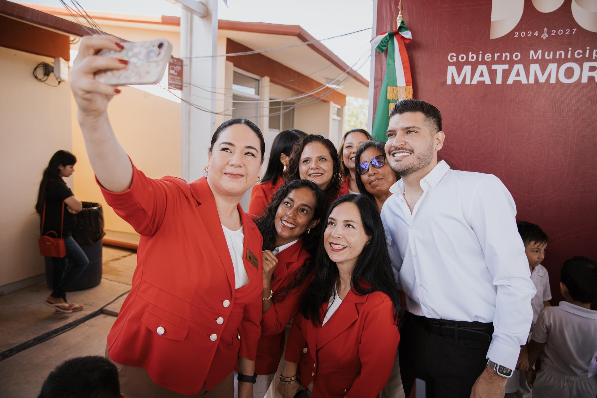 El alcalde de Matamoros, Beto Granados, encabezó esta mañana la Ceremonia de Honores a la Bandera en el Jardín de Niños Justo Sierra Méndez, donde compartió un emotivo momento con alumnas, alumnos, personal docente y padres de familia.