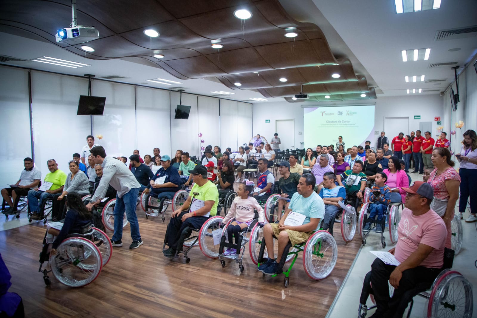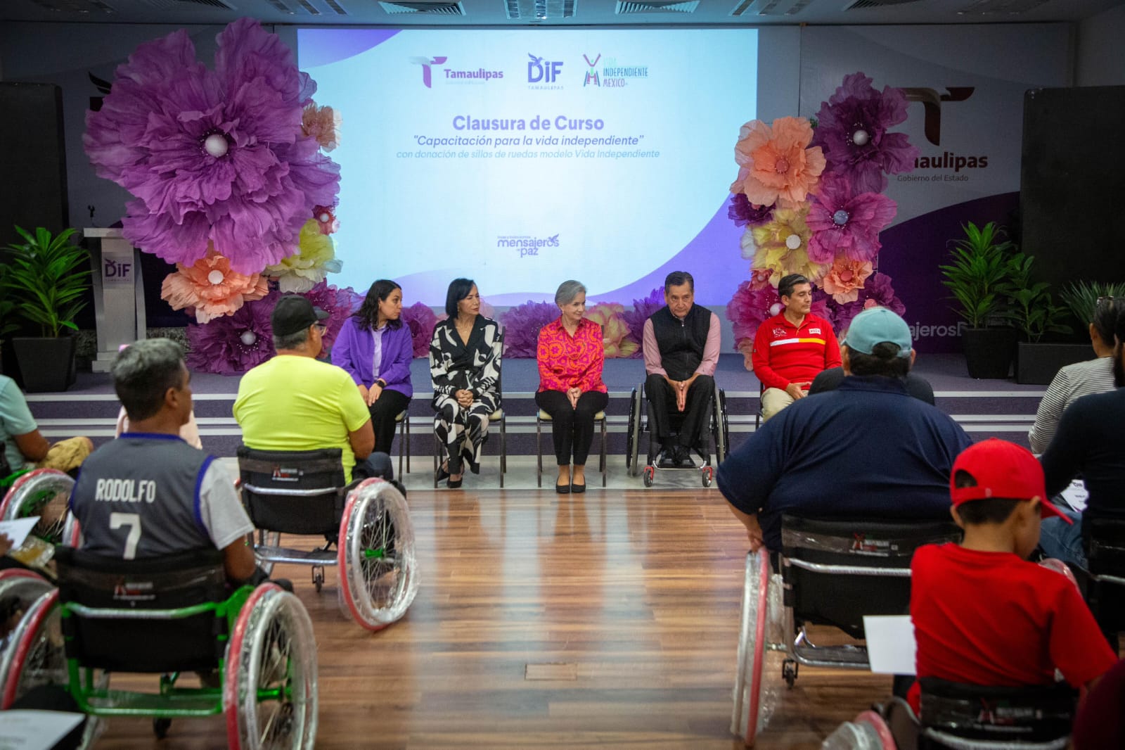 Con la presentación de una novedosa silla de ruedas bipedestadora, el Sistema DIF Tamaulipas, que preside la doctora María de Villarreal, y la asociación Vida Independiente llevaron a cabo la clausura del Curso para la Vida Independiente, en el que participaron beneficiarios de sillas de ruedas y alumnos del Centro de Rehabilitación y Educación Especial (CREE).