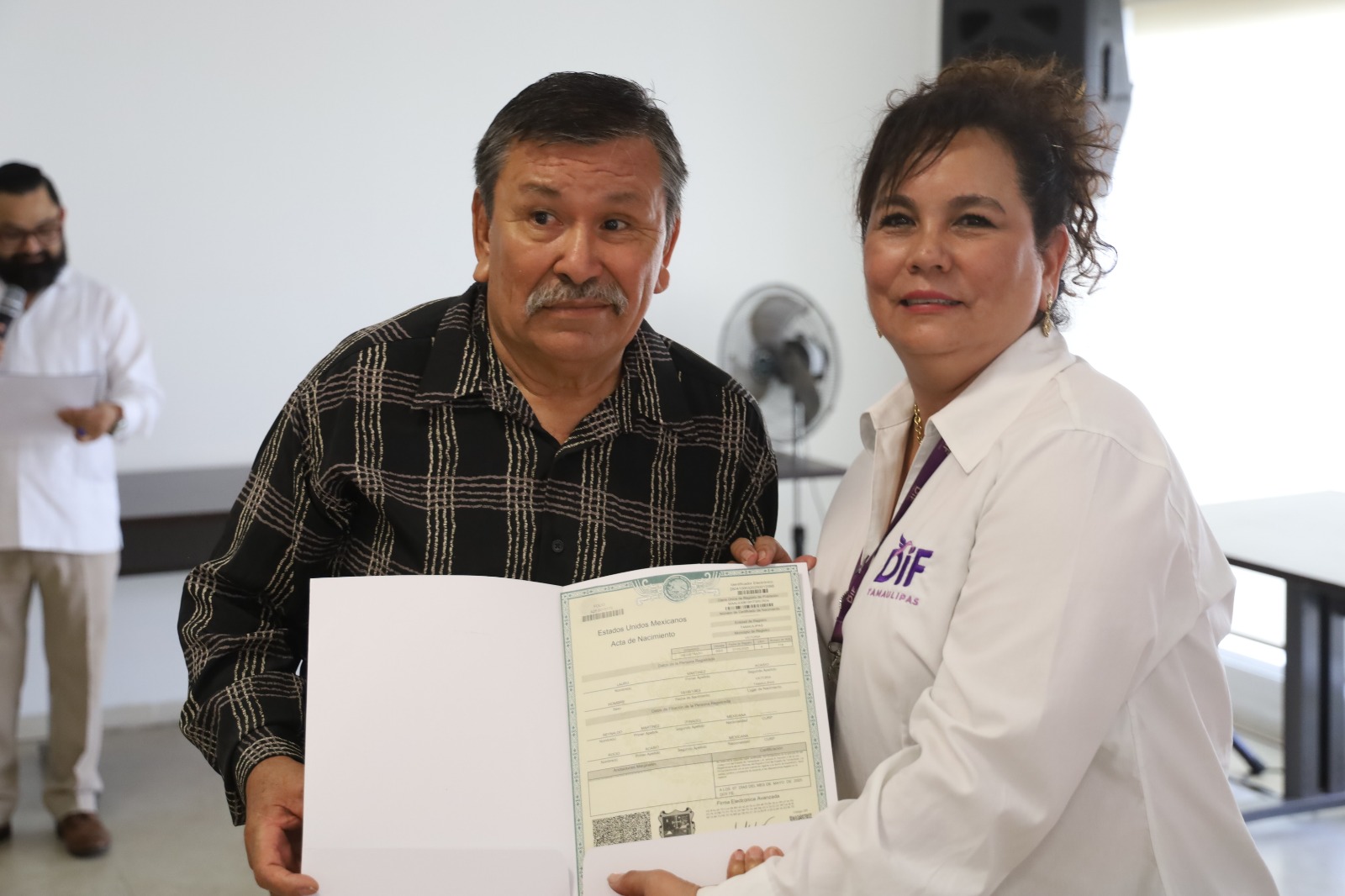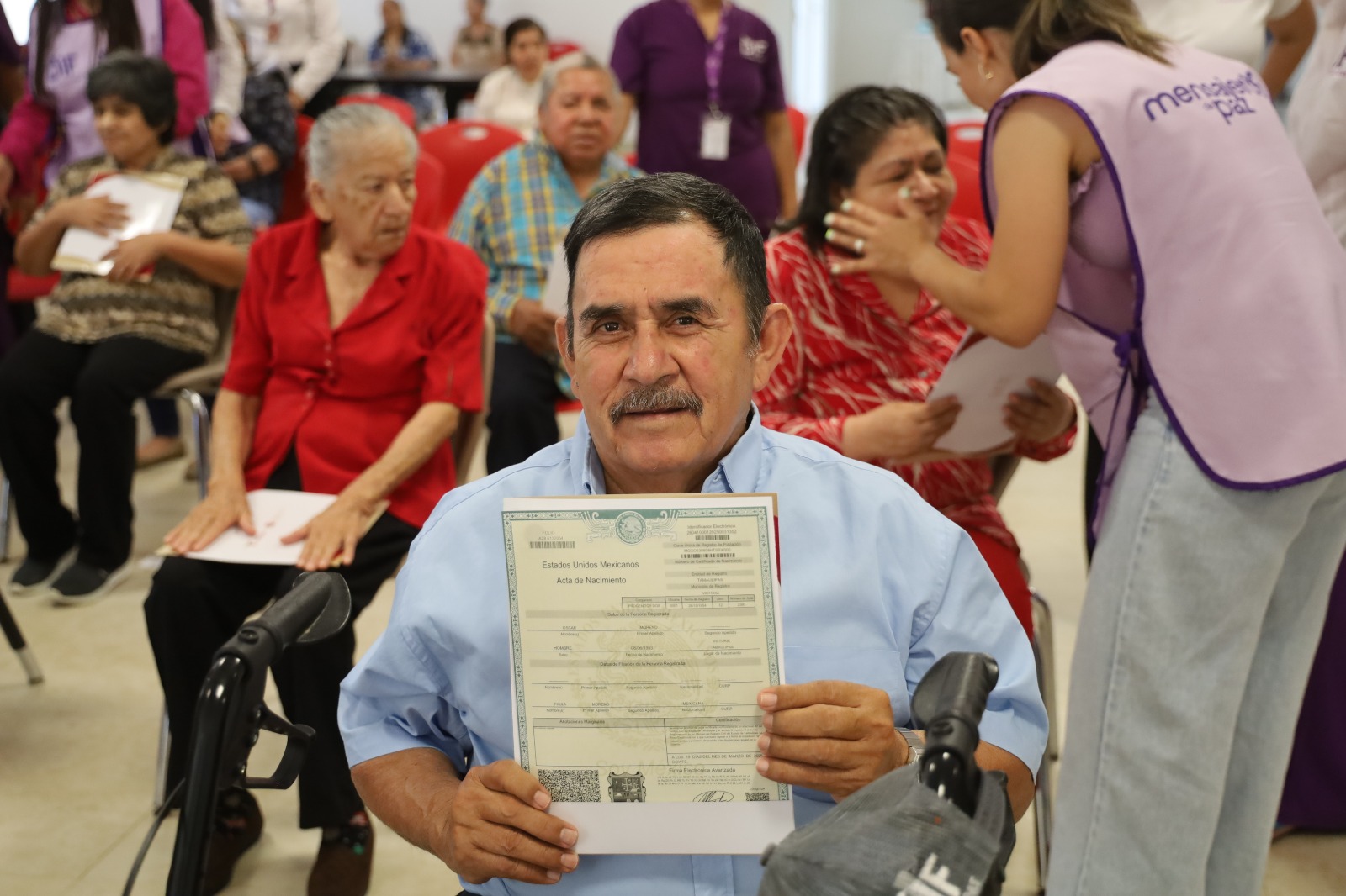 Como parte de la estrategia impulsada por el gobernador del Estado, Américo Villarreal Anaya, y fortalecida por el compromiso de la presidenta del Sistema DIF Tamaulipas, doctora María Santiago de Villarreal, para asegurar que todas y todos los tamaulipecos cuenten con documentos de identidad que respalden sus derechos, el DIF estatal llevó a cabo la entrega de actas de nacimiento a adultos mayores en la Casa Hogar del Adulto Mayor.