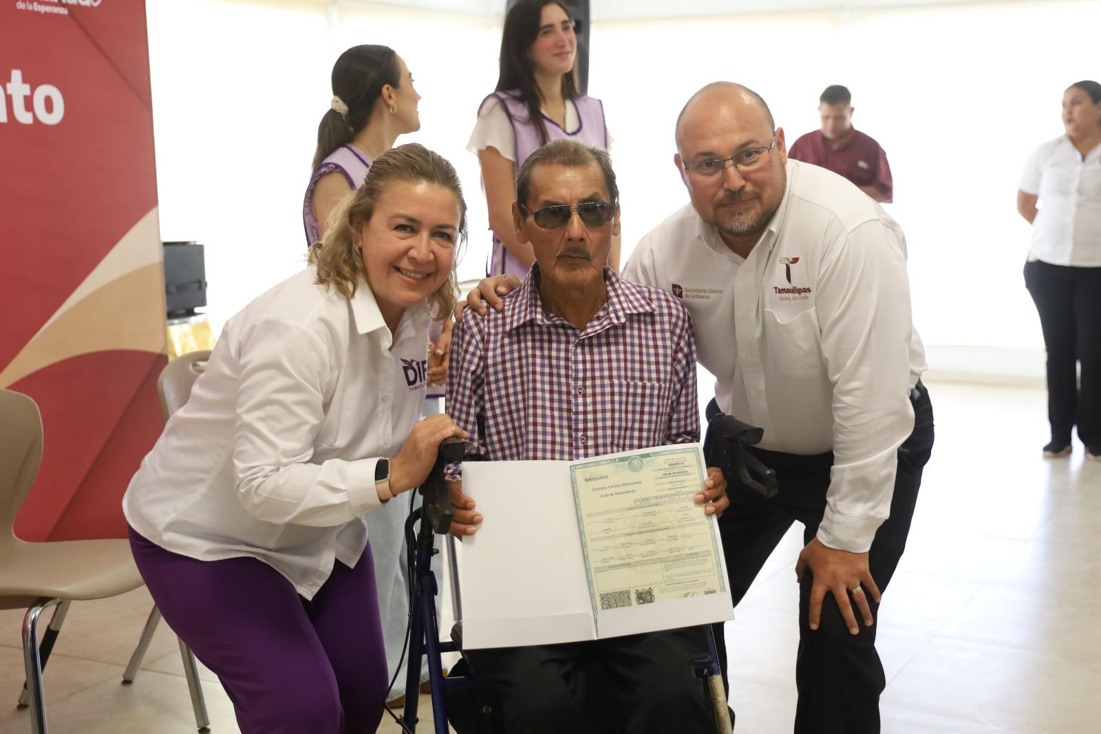 Asimismo, el secretario general de Gobierno, agradeció el trabajo coordinado entre instituciones, destacando que la colaboración entre el DIF Tamaulipas, el Voluntariado de la Esperanza y el Registro Civil es un ejemplo de cómo la política pública, cuando se ejecuta con sensibilidad y vocación de servicio, puede transformar vidas de manera directa y significativa.