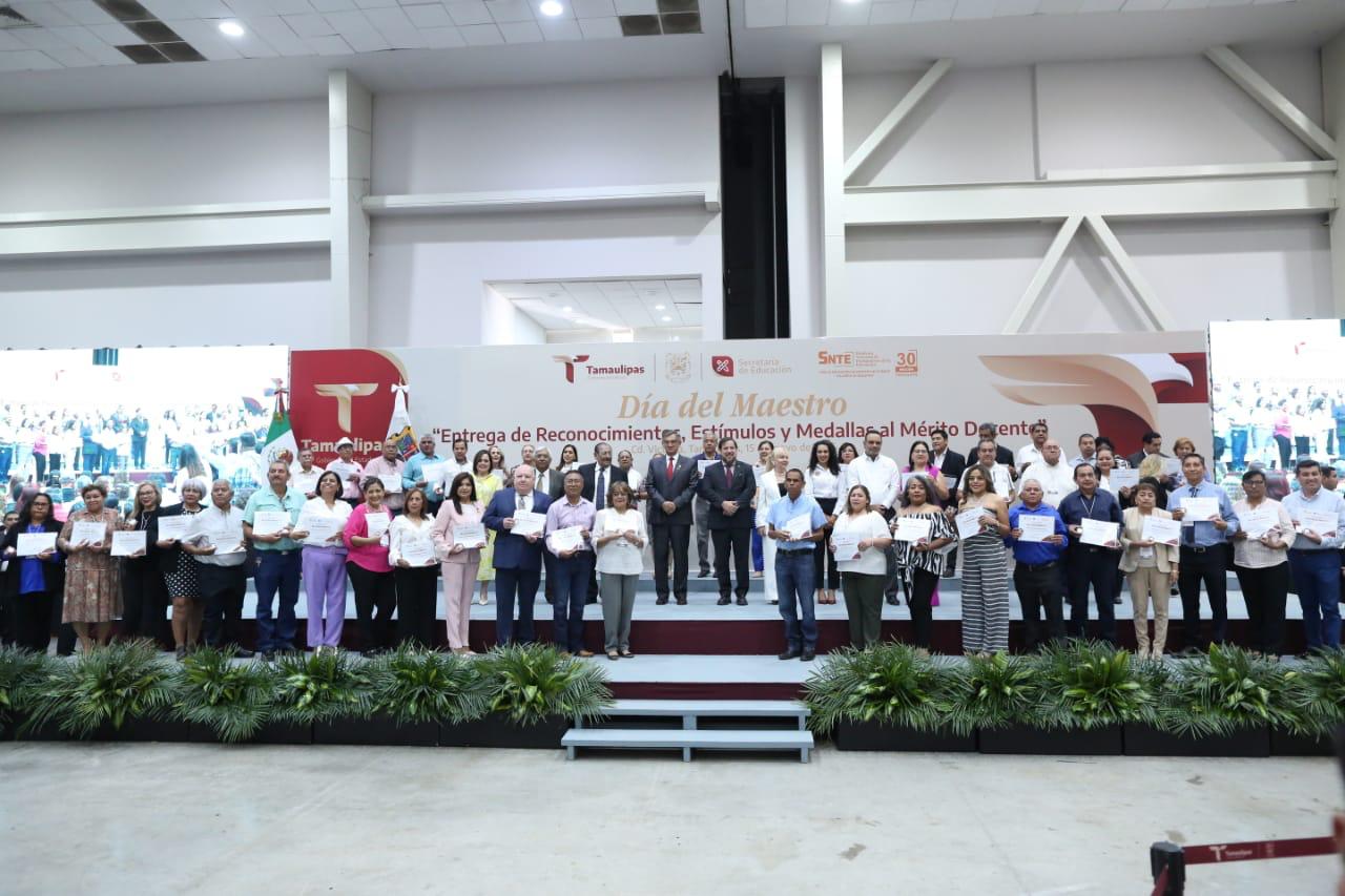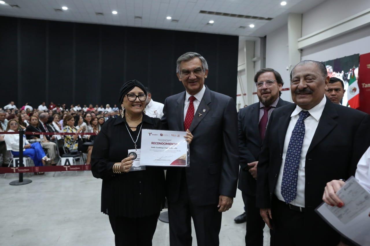 Gobernador de Tamaulipas entregó 479 medallas al mérito docente «Maestro Rafael Ramírez» por 30 años de servicio.
