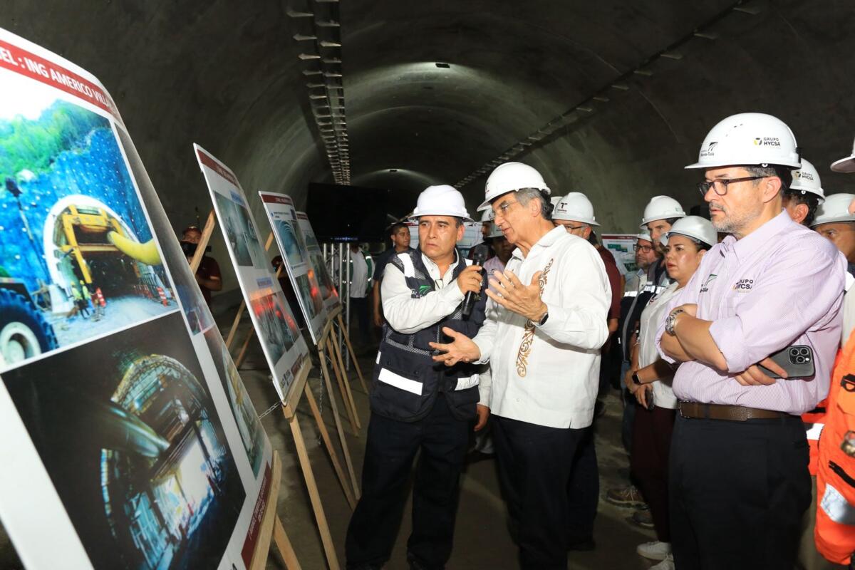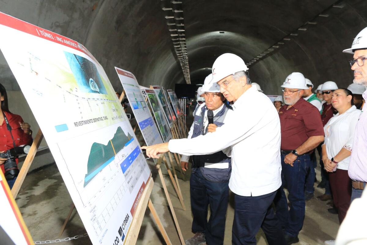 Al continuar el recorrido ya en el túnel que lleva el nombre del exgobernador Américo Villarreal Guerra, la explicación estuvo a cargo del ingeniero José Luis Amozoqueña, quien dio a conocer que el revestimiento definitivo del interior de la obra registra un avance del 70 por ciento. El director de la construcción del túnel agregó que hay 400 trabajadores para concluir en el tiempo previsto y detalló que, a la fecha, no se ha registrado ningún accidente fatal, a pesar de la magnitud que ha implicado la construcción de uno de los túneles más largos del país.
