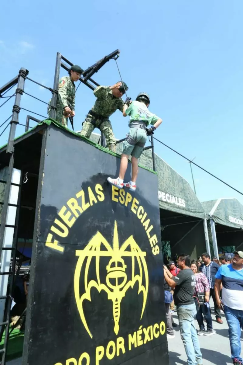 Agregó que los asistentes podrán apreciar módulos interactivos, tirolesas, pistas canófilas, área ecuestre, vehículos del Ejército y Guardia Nacional, aeronaves, equipo táctico y logístico, la pista infantil, domo audiovisual, hospital quirúrgico, así como módulos de información del sistema educativo militar y del Servicio Militar Nacional.