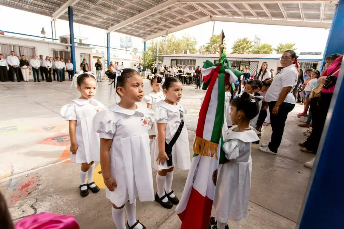 El alcalde Beto Granados participó en la ceremonia de Honores a la Bandera realizada en el Jardín de Niños Club Activo 20-30, reafirmando su compromiso con la formación cívica y el fortalecimiento de valores patrios desde la infancia.