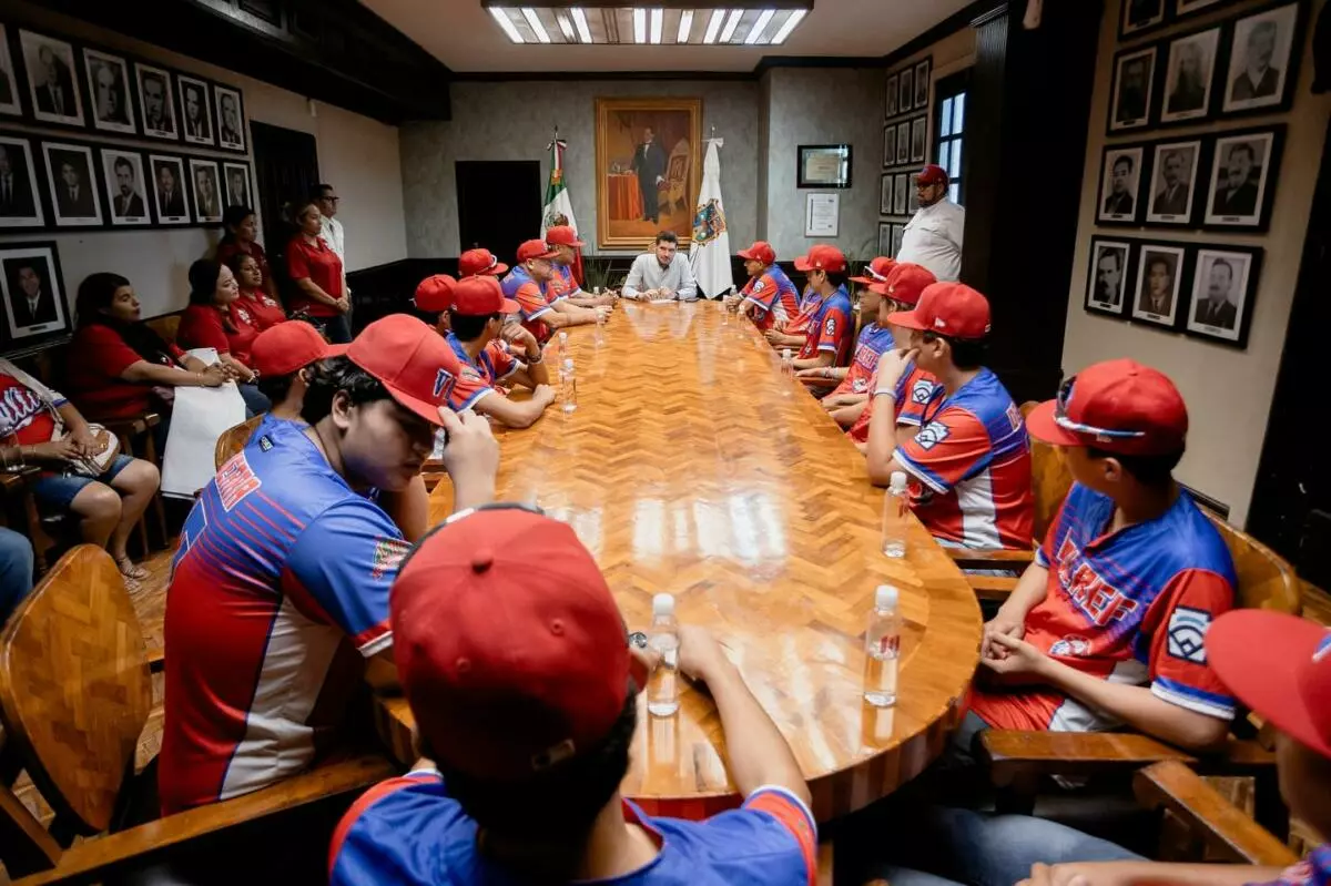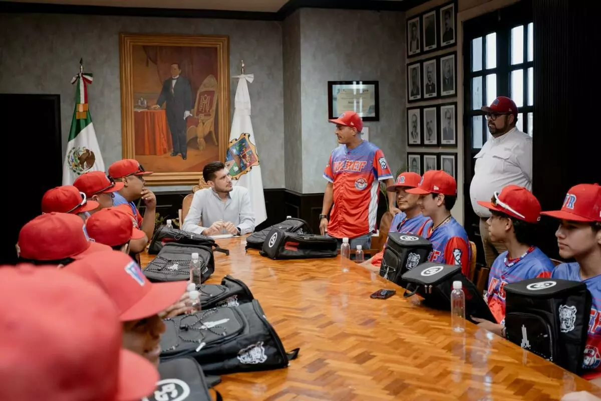 El alcalde Beto Granados recibió este martes a los integrantes de la Liga Pequeña de Béisbol Villa del Refugio A.C., quienes representarán a México en el Campeonato Latinoamericano y del Caribe, a celebrarse del 4 al 12 de julio en Guatemala.