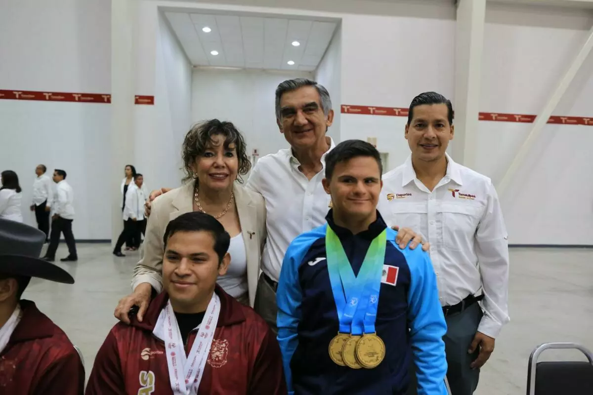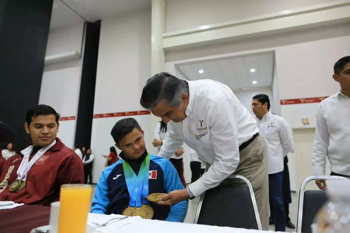 «Es un ejemplo y orgullo para Tamaulipas», afirmó el gobernador ante el aplauso de pie que le brindaron al joven atleta, presente en la ceremonia.