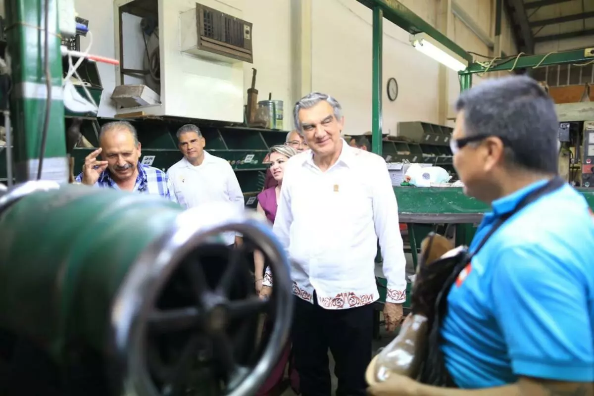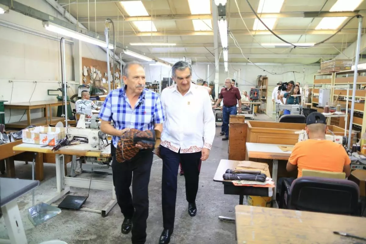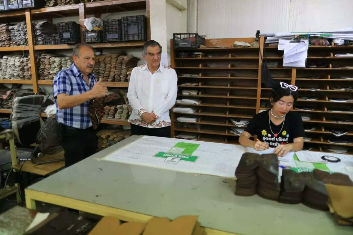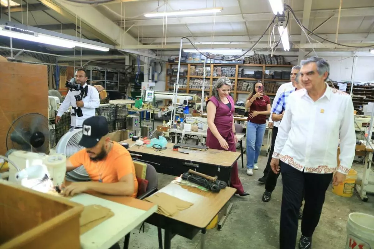 Como parte de su extenso recorrido en Mier, Villarreal Anaya visitó Don Cuco Boots, un establecimiento referente de esta ciudad en la fabricación de botas vaqueras elaboradas artesanalmente.