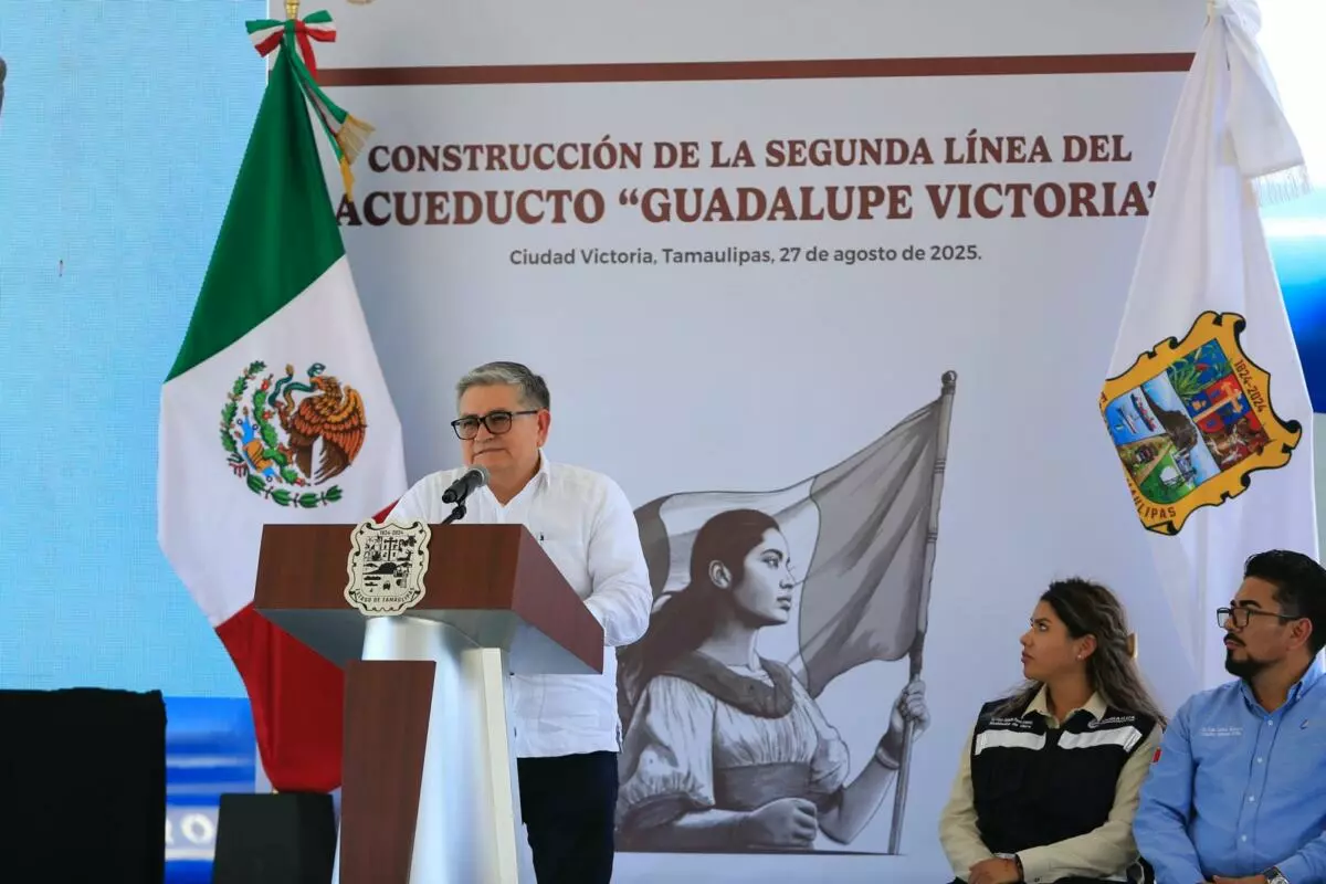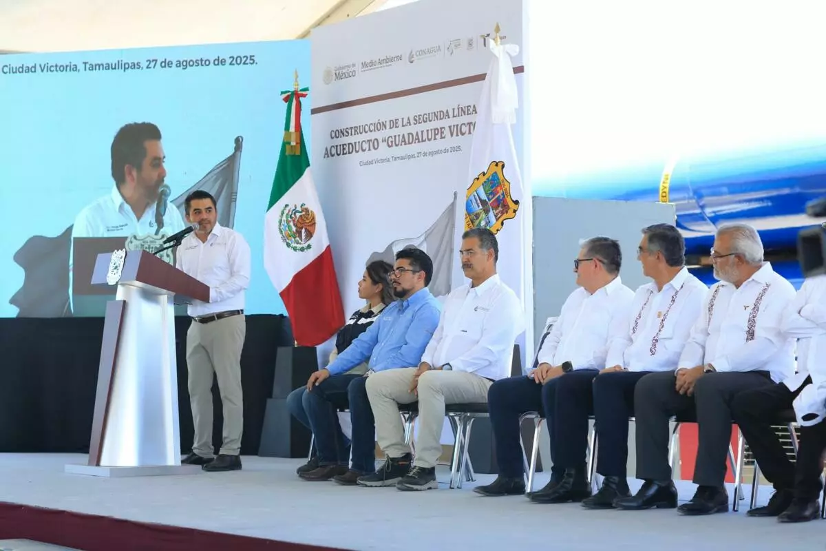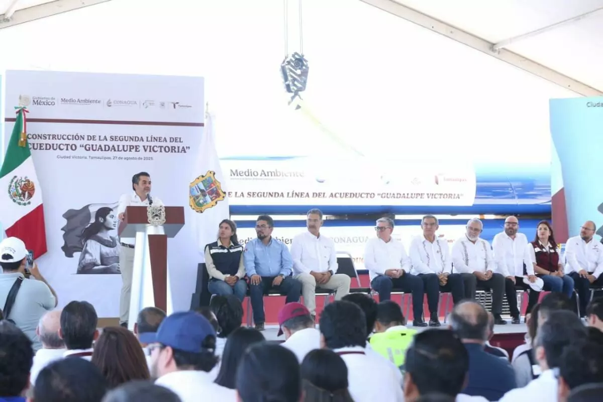 Este día estamos frente a una obra que tiene memoria y futuro, ya que hace 38 años el ingeniero Américo Villarreal Guerra inició la construcción de la primera línea del acueducto, que por décadas nutrió de agua a nuestra capital. Hoy, su hijo retoma ese legado y lo proyecta hacia el futuro, consolidando una segunda línea que asegurará el suministro del vital líquido para las generaciones presentes y futuras de Ciudad Victoria”, mencionó.