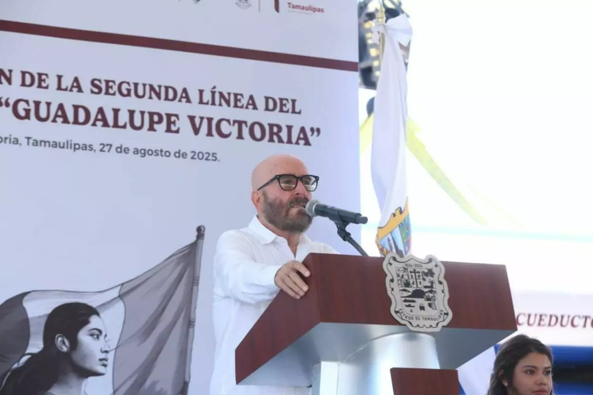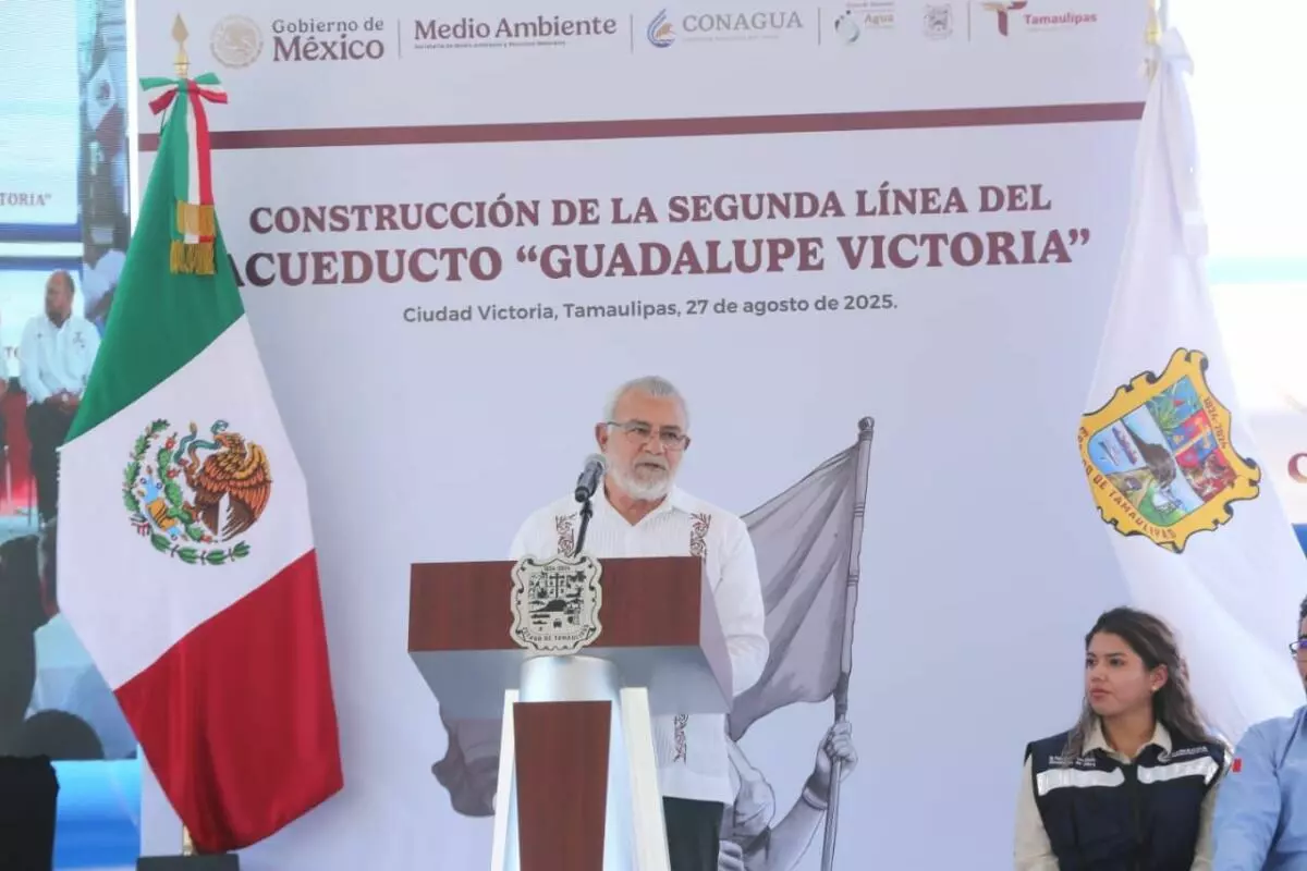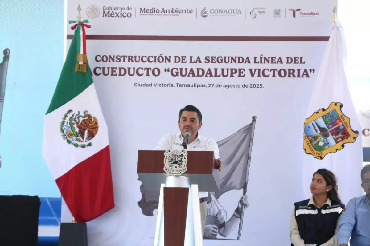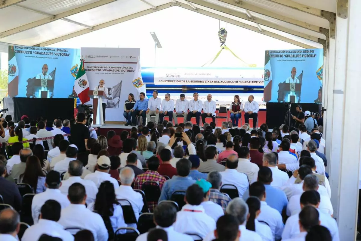 Este día estamos frente a una obra que tiene memoria y futuro, ya que hace 38 años el ingeniero Américo Villarreal Guerra inició la construcción de la primera línea del acueducto, que por décadas nutrió de agua a nuestra capital. Hoy, su hijo retoma ese legado y lo proyecta hacia el futuro, consolidando una segunda línea que asegurará el suministro del vital líquido para las generaciones presentes y futuras de Ciudad Victoria”, mencionó.