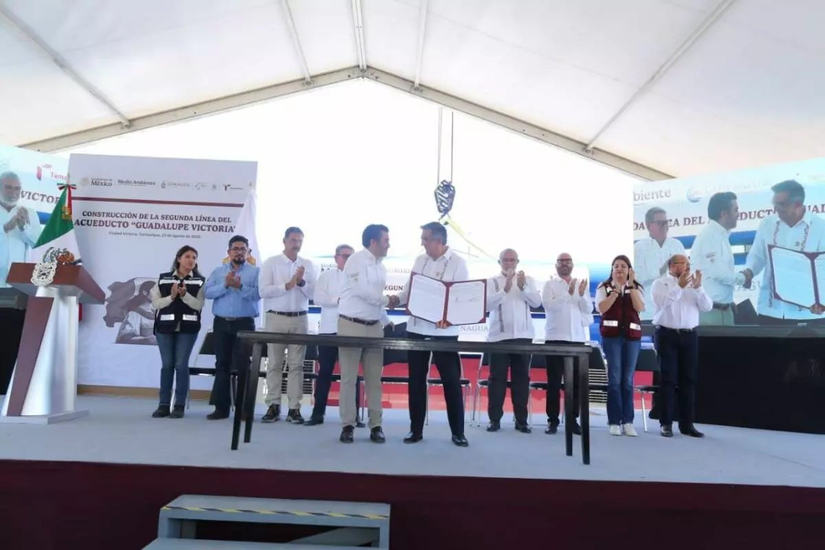 “Este día estamos frente a una obra que tiene memoria y futuro, ya que hace 38 años, el ingeniero Américo Villarreal Guerra inició la construcción de la primera línea del acueducto, que por décadas nutrió de agua a nuestra capital. Hoy, su hijo retoma ese legado y lo proyecta hacia el futuro, consolidando una segunda línea que asegurará el suministro del vital líquido para las generaciones presentes y futuras de Ciudad Victoria”.