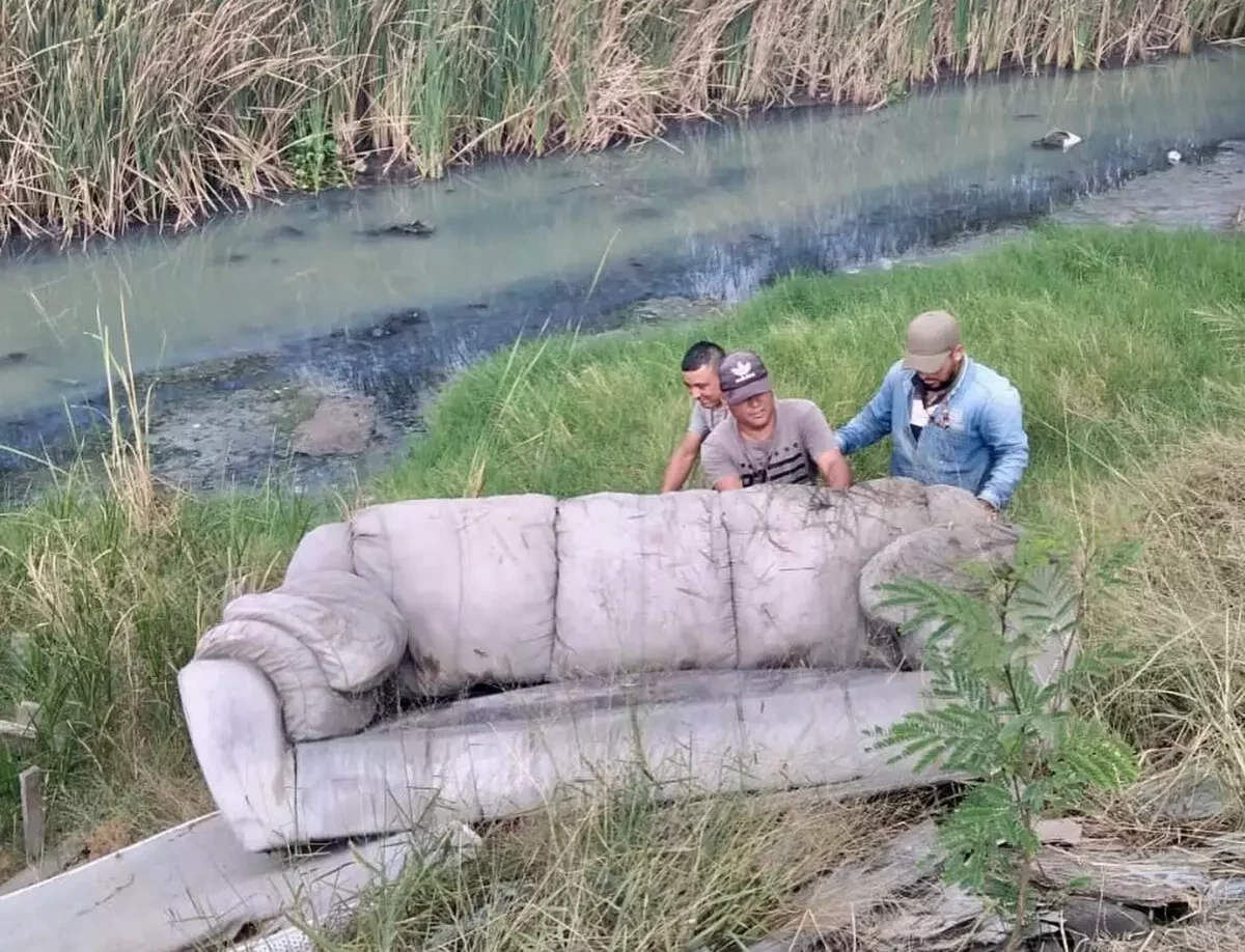 Durante los trabajos de limpieza en los drenes pluviales, personal de la Secretaría de Desarrollo Urbano encontró objetos de gran tamaño como un sillón y varios colchones, lo que refleja la importancia de generar mayor conciencia ciudadana.