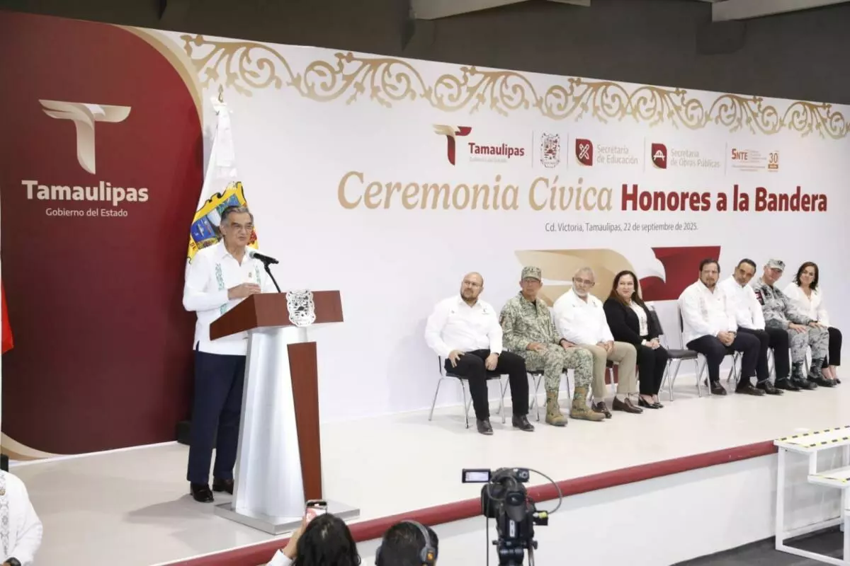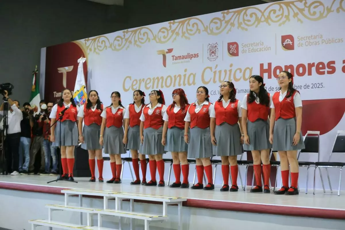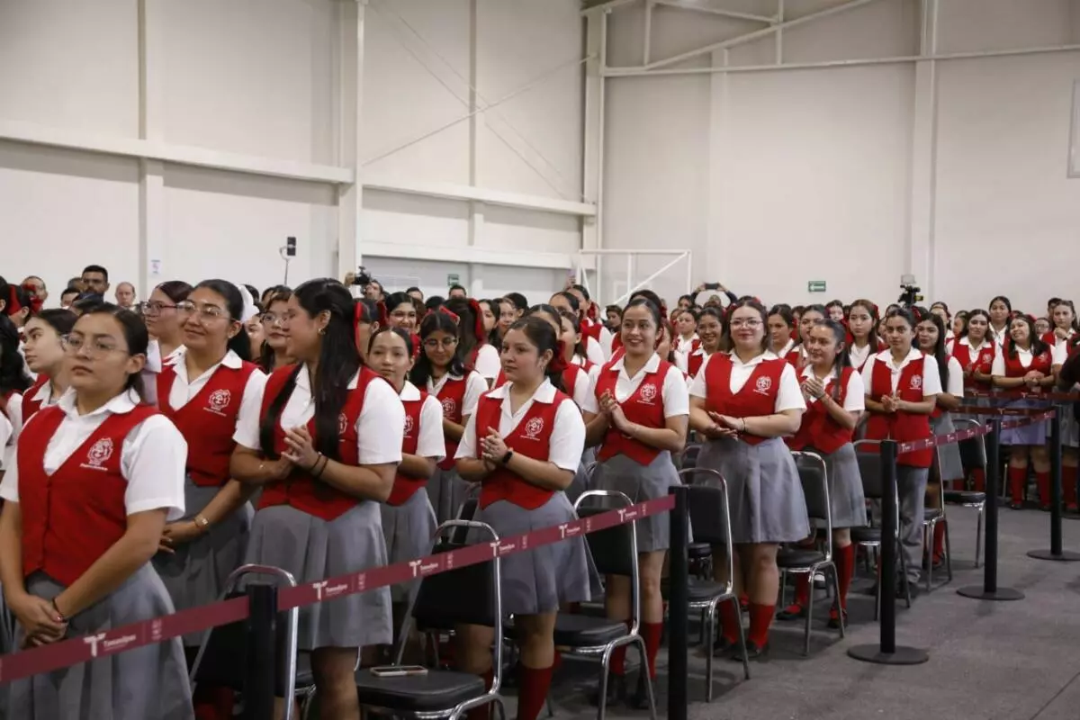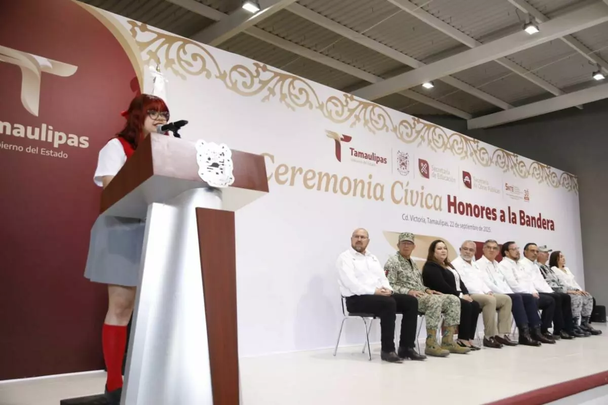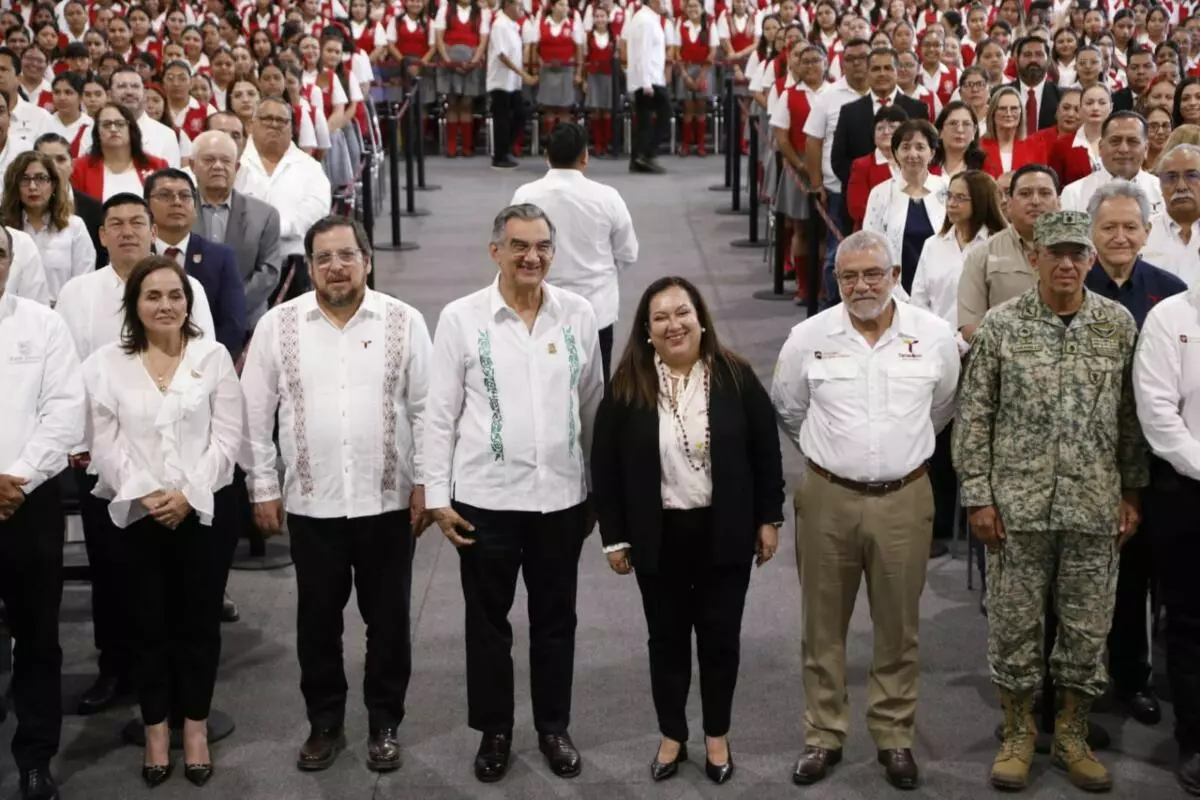 En la ceremonia cívica de honores, ante más de 400 alumnas, agregó que en Tamaulipas la transformación comienza en la escuela, “y a ustedes les corresponde garantizarlo”, afirmó.
