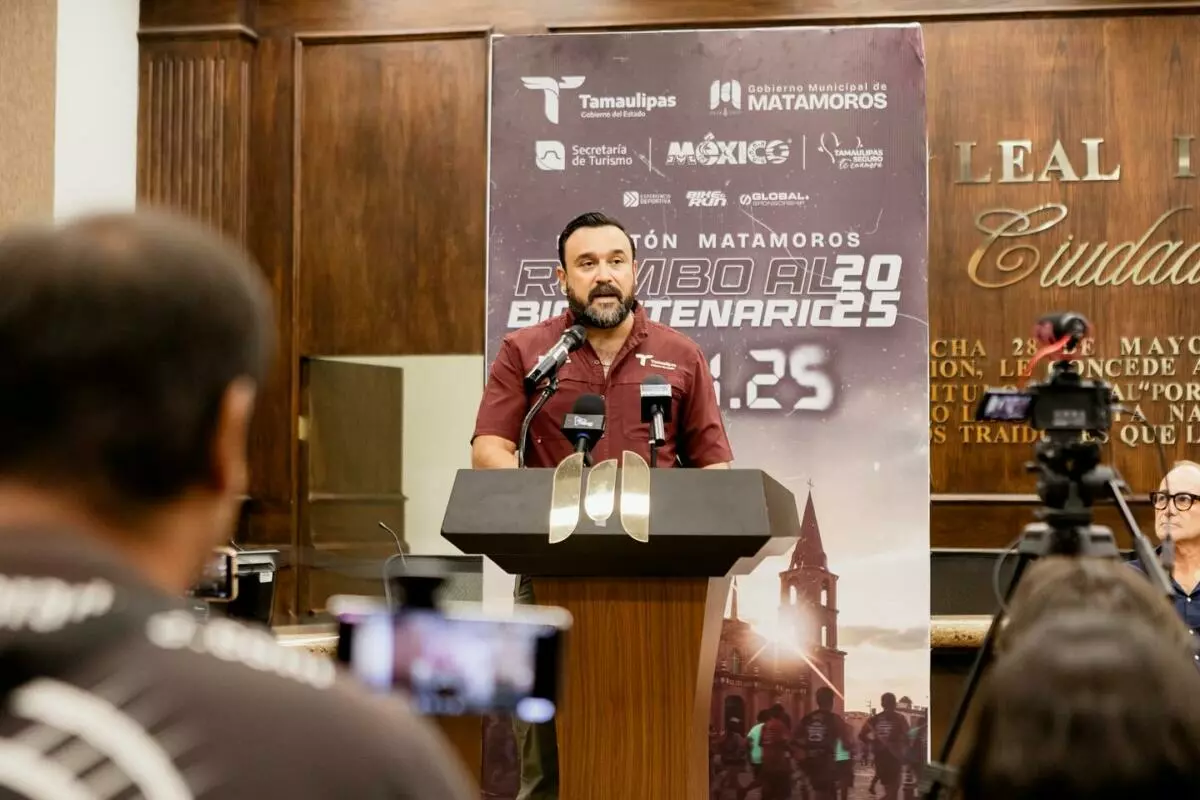 El alcalde Beto Granados, en compañía del secretario de Turismo de Tamaulipas, Benjamín Hernández Rodríguez, encabezó la Conferencia de Prensa del Primer “Maratón Matamoros Rumbo al Bicentenario”, un evento que marcará un hecho histórico para la ciudad al ser el primer maratón en la historia de Matamoros.