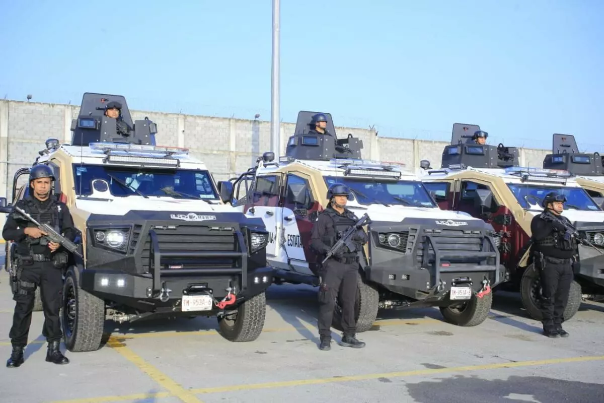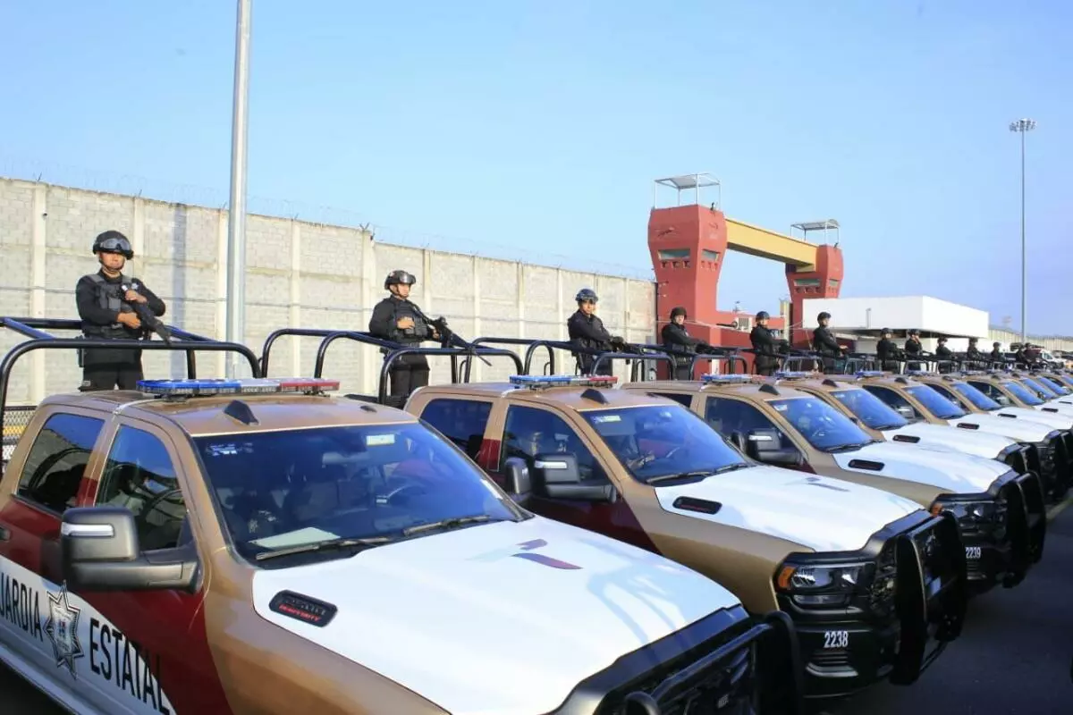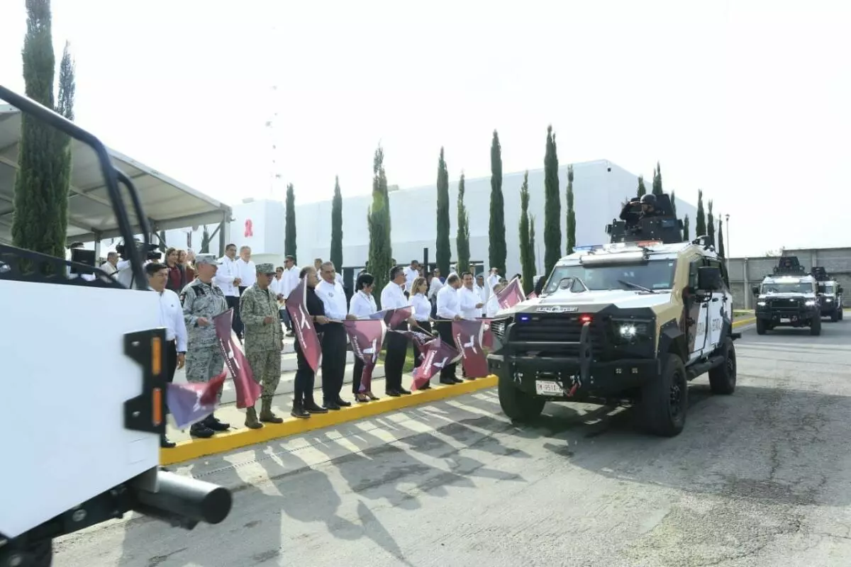 Durante el evento, en el Complejo Estatal de Seguridad Pública, el gobernador dio el banderazo a 14 vehículos blindados tipo Mamba y 15 camionetas pick up Ram 2500, para fortalecer el despliegue operativo de la corporación.