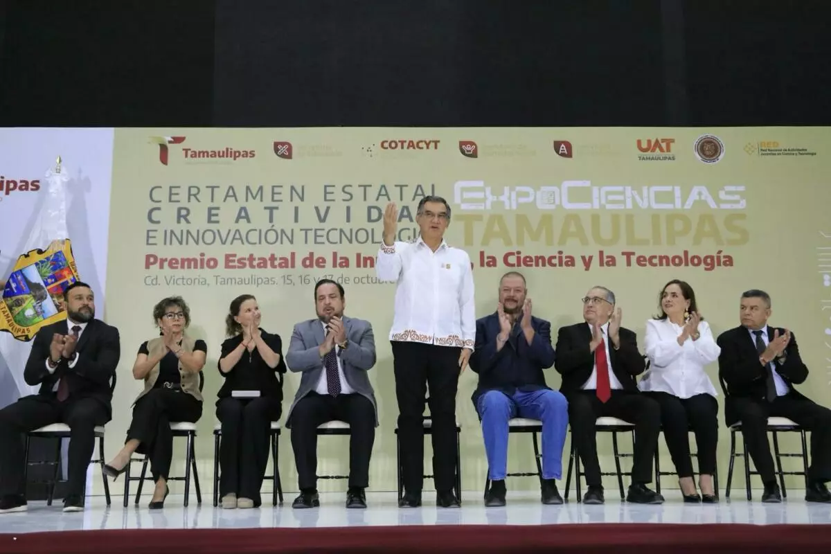“Si queremos transformación, es a base de educación, de más educación y de más educación; ese es el pilar de nuestra sociedad”, declaró el mandatario estatal ante estudiantes, investigadores y docentes reunidos para celebrar el talento científico de la entidad, durante el evento realizado en el Polyforum Rodolfo Torre Cantú, junto al secretario de Educación, Miguel Ángel Valdez Reyes y al director general del Consejo Tamaulipeco de Ciencia y Tecnología, Julio Martínez Burnes, entre otras autoridades que estuvieron en el presídium.