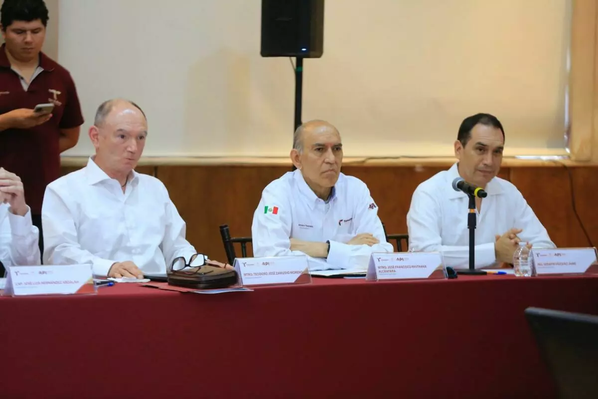 “Ustedes nos han aportado realmente en esta tarde, en estas horas de trabajo y las que nos han brindado también en sus reuniones y que me llegan a través de Gustavo (Guzmán), en algunas apreciaciones y tomas de decisiones por el Gobierno del Estado, pues ustedes nos aportan oro molido para nuestro puerto, que es también suyo, para el desarrollo de nuestra entidad y, desde luego, de nuestro país”, expresó.