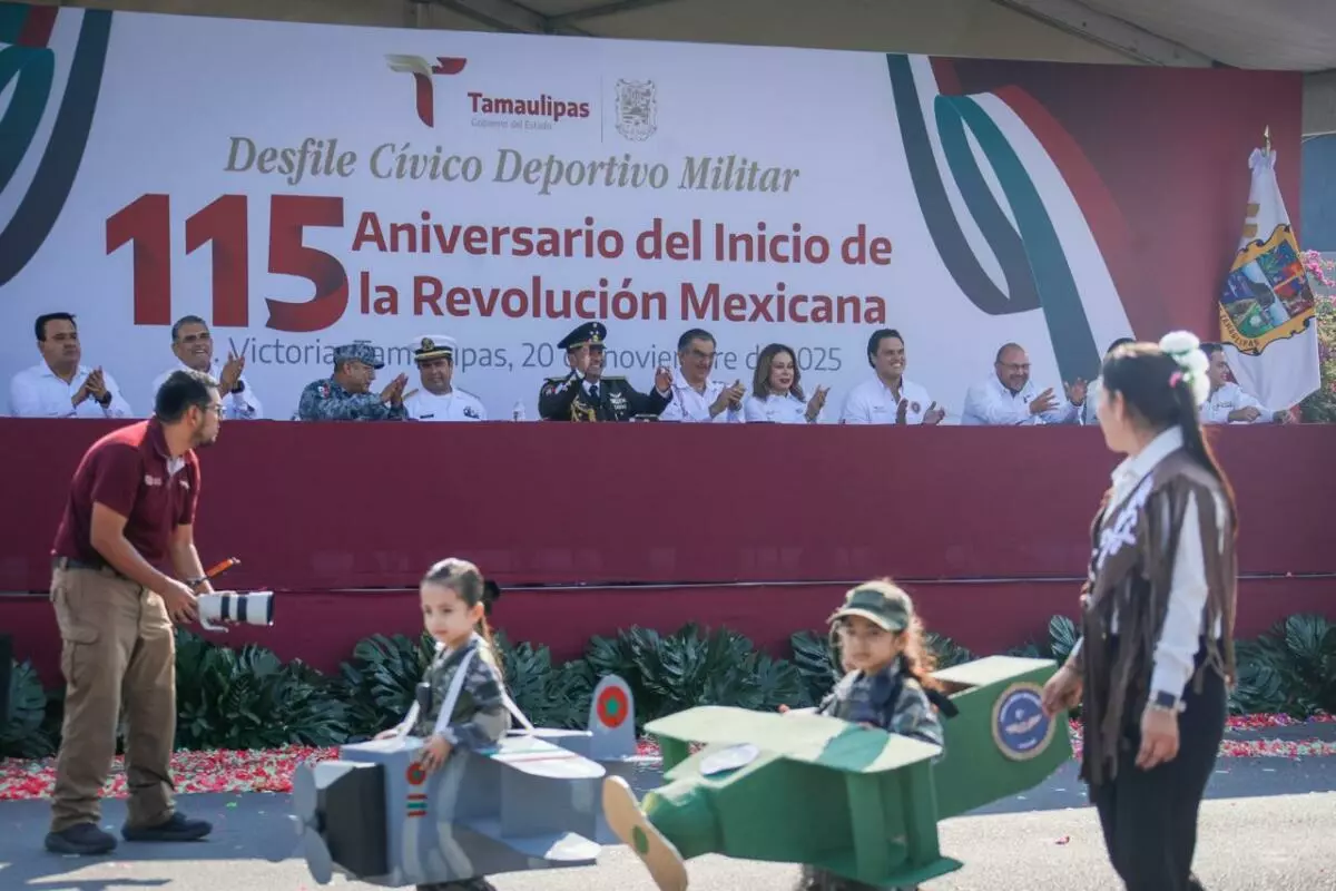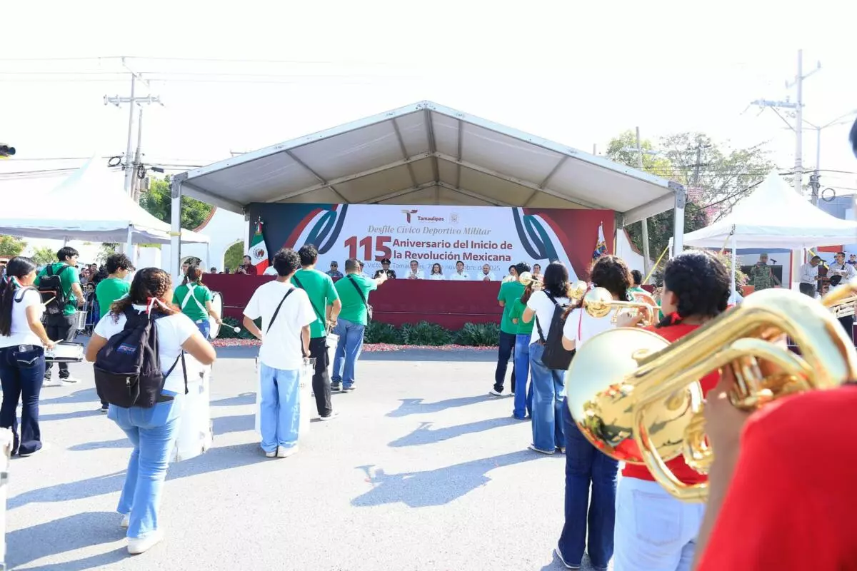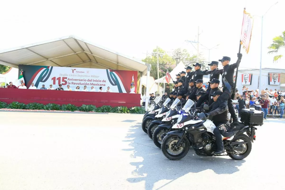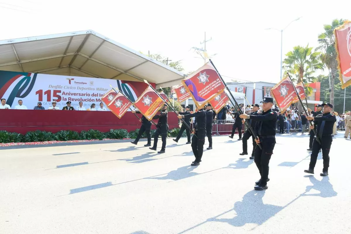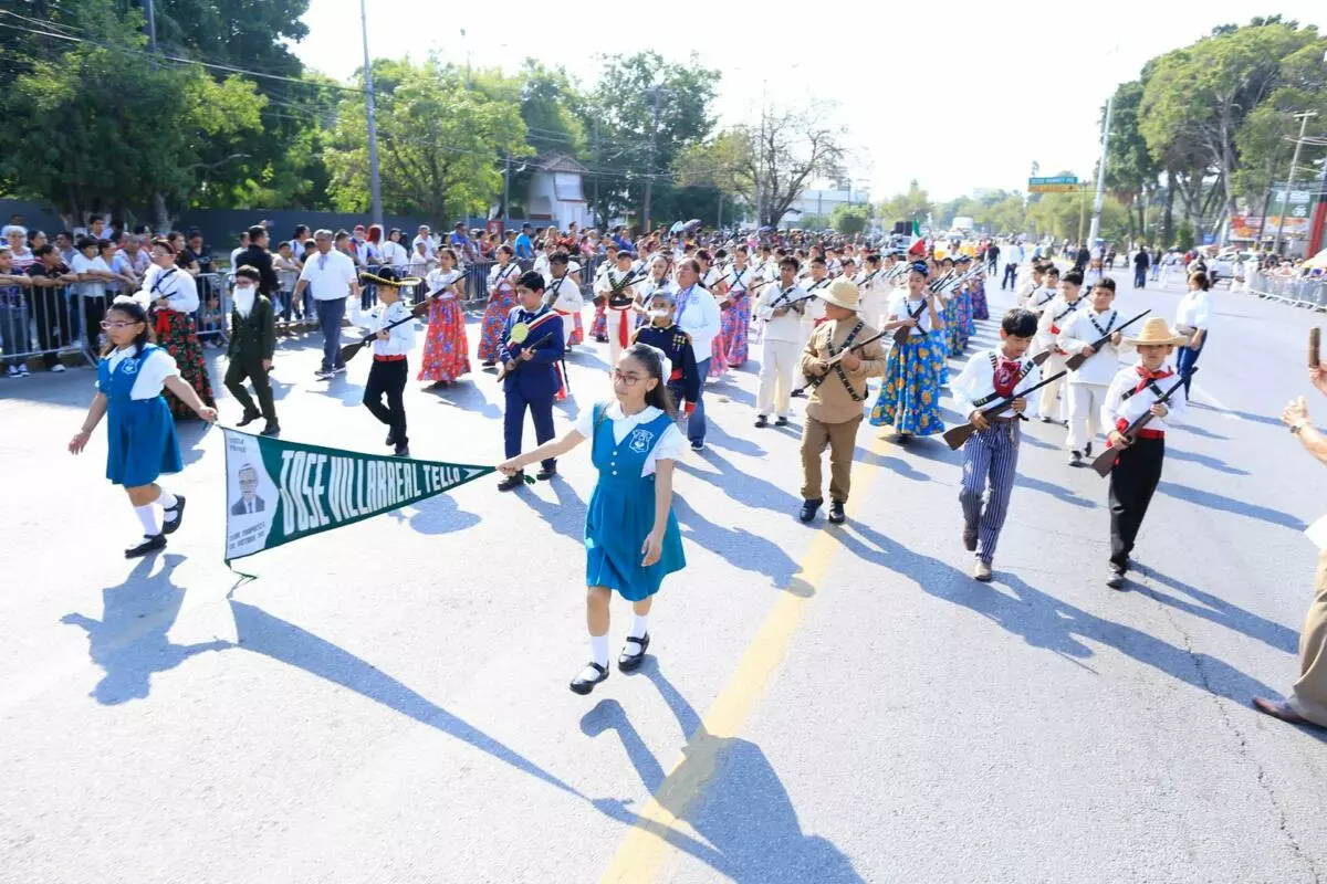 Con la presentación, por primera vez, de una banda de guerra monumental integrada por 500 alumnos y alumnas de diferentes municipios, este jueves se conmemoró el desfile cívico, deportivo y militar, con la entusiasta participación de estudiantes, jóvenes, niñas y niños, en conmemoración del 115 aniversario del inicio de la Revolución Mexicana, presidido por el gobernador Américo Villarreal Anaya.